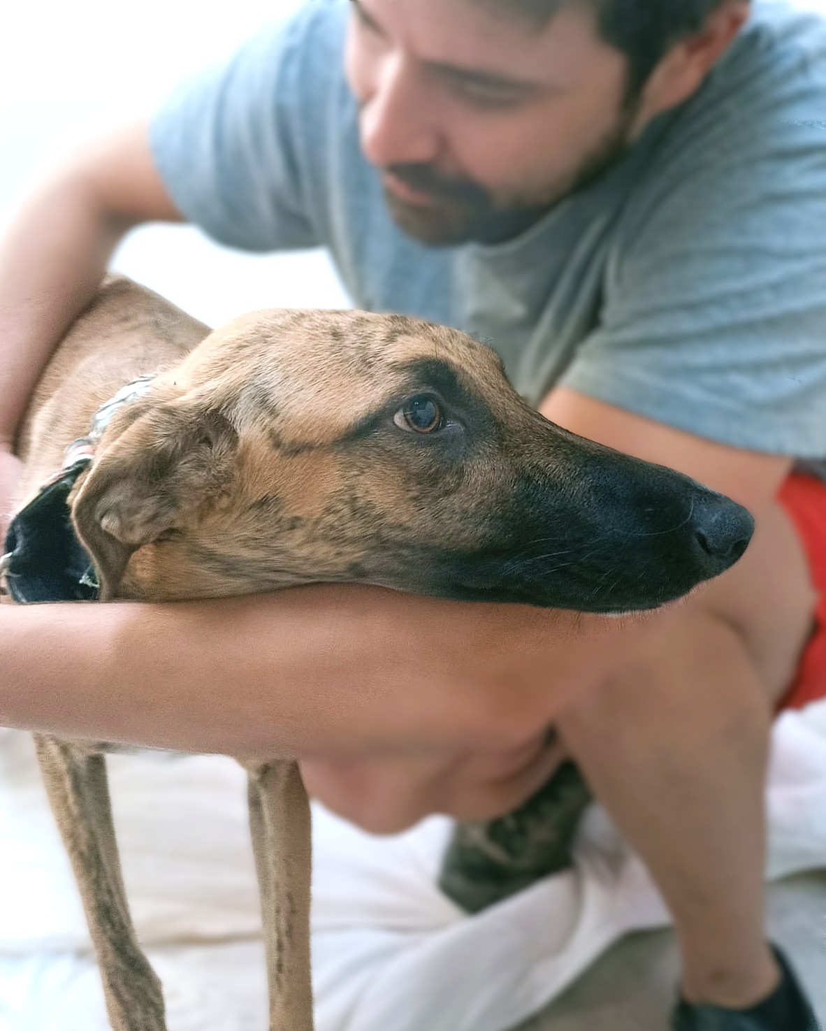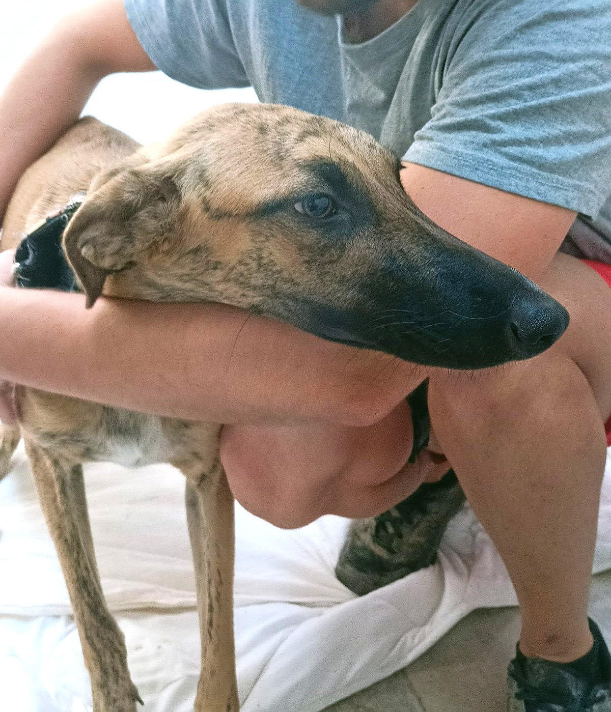 Shania is een goede en rustige windhond. De eerste dagen was ze erg aanhankelijk, heel lief voor alle mensen en zonder angst, ze zocht alleen knuffels en kwispelde vrolijk. We merken echter dat het asiel haar meer gestrest doet voelen, we zien dat ze rusteloos en minder gelukkig is dan voorheen, ze zoekt niet meer zo vaak knuffels als vroeger. We zullen het later blijven evalueren om meer informatie over haar karakter te kunnen geven naarmate de dagen verstrijken.