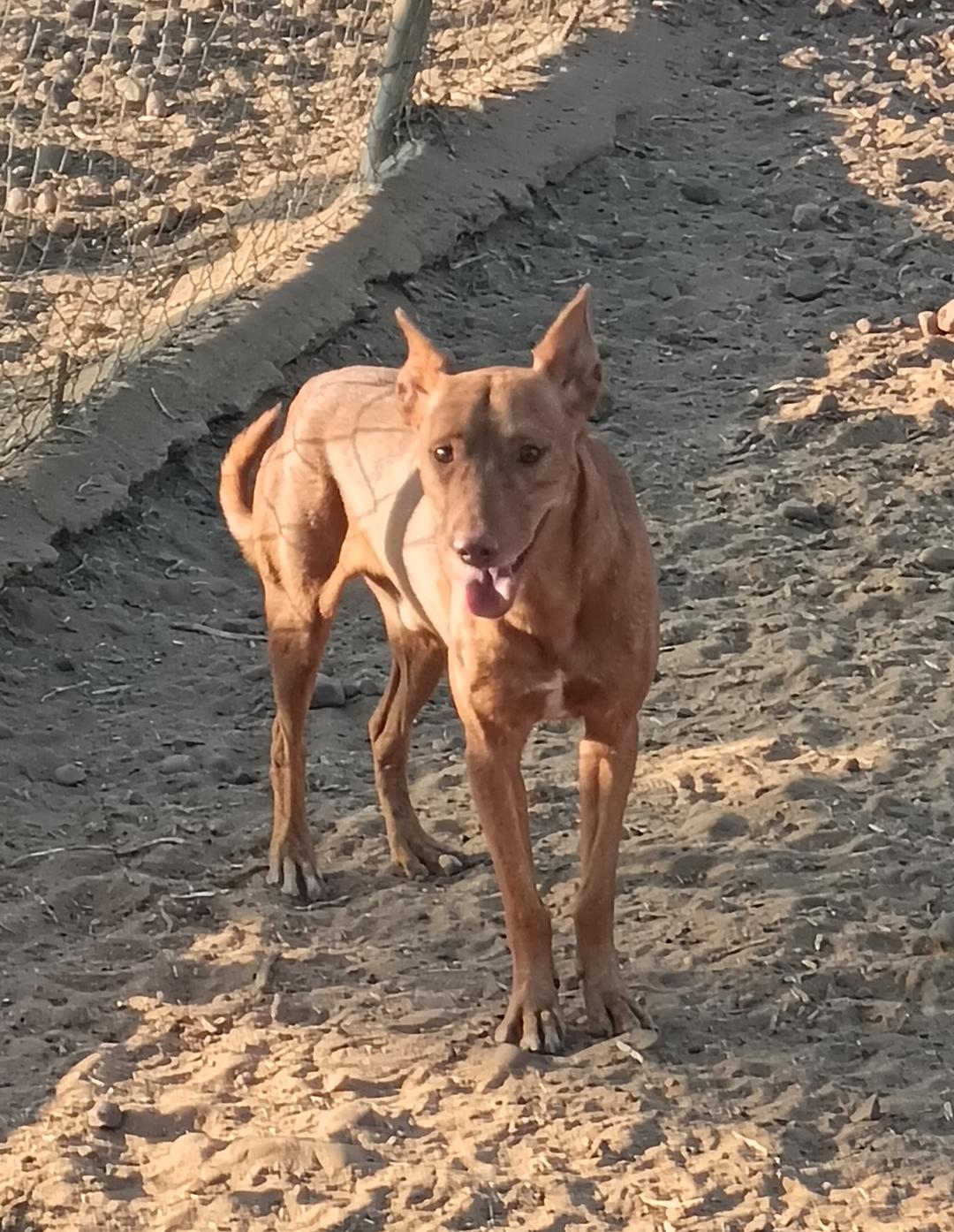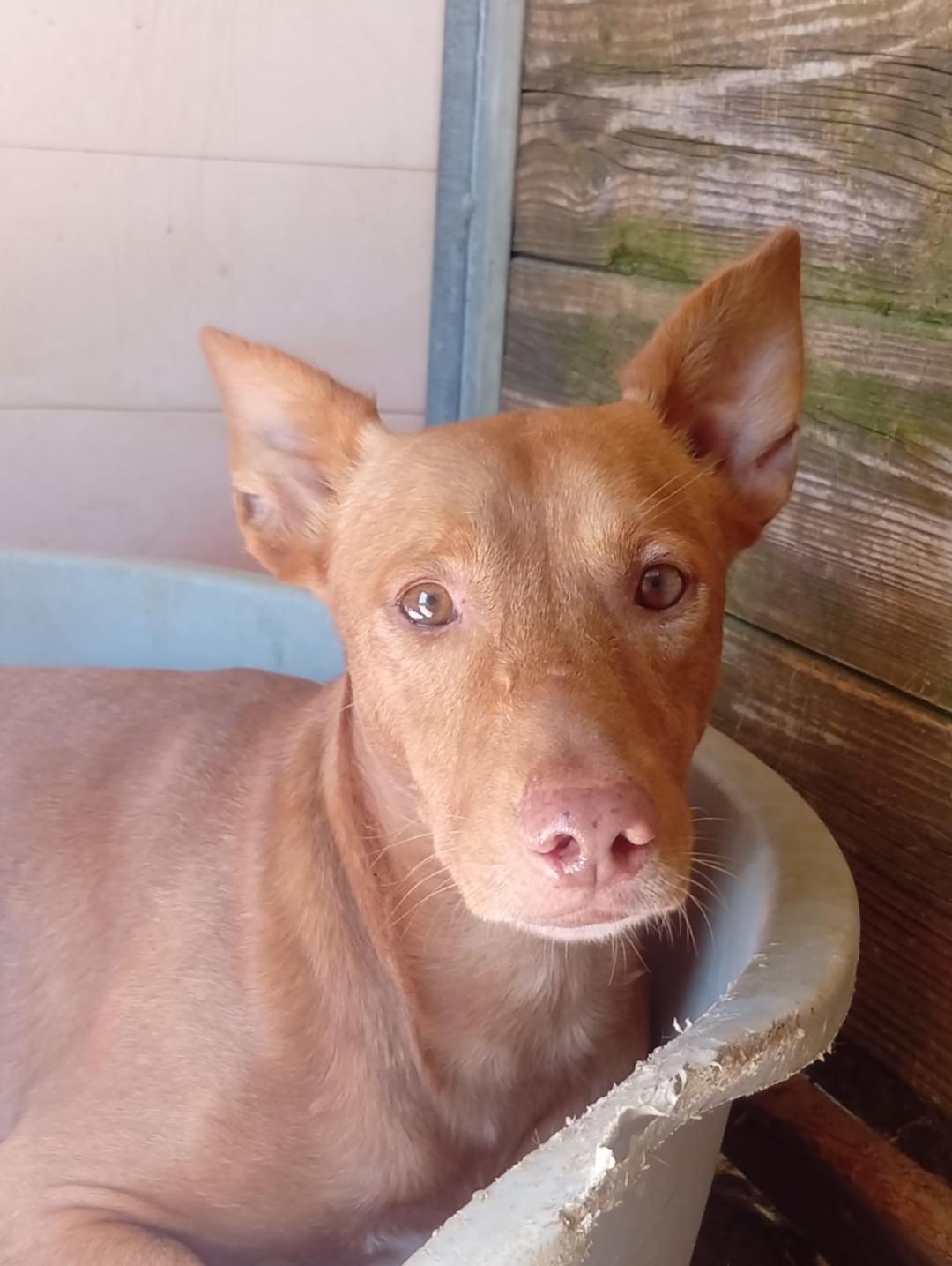 Hij is een prachtige podenco. Hij is nog steeds een beetje bang, maar hij begint al tekenen van vertrouwen te vertonen. Met geduld en liefde zijn we ervan overtuigd dat hij een perfecte hond zal worden.