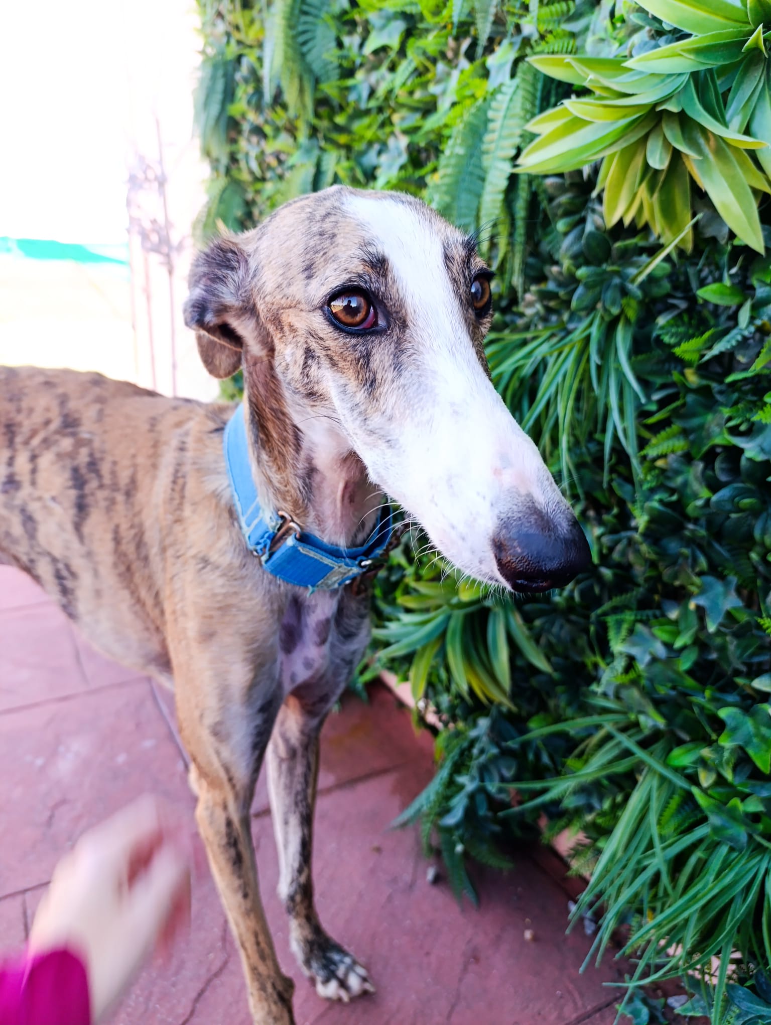 Luca is een zeer sociale, vriendelijke en vrolijke windhond, typisch een jonge windhond die het heerlijk vindt om iedereen te begroeten en contact te maken. Hij is nergens bang voor, is heel vrolijk en gelukkig, hoewel hij speels is, is hij niet te nerveus, hij gedraagt zich geweldig in zijn kennel, ook al zijn de andere honden veel rustiger dan hij en willen ze niet spelen. Het is een zeer makkelijk hondje, perfect voor gezinnen die een vriendelijke en speelse windhond zoeken, die meestal niet lange tijd van huis zijn of die een andere vrolijke hond hebben met wie hij het leuk kan hebben. Met andere honden is hij onderdanig.