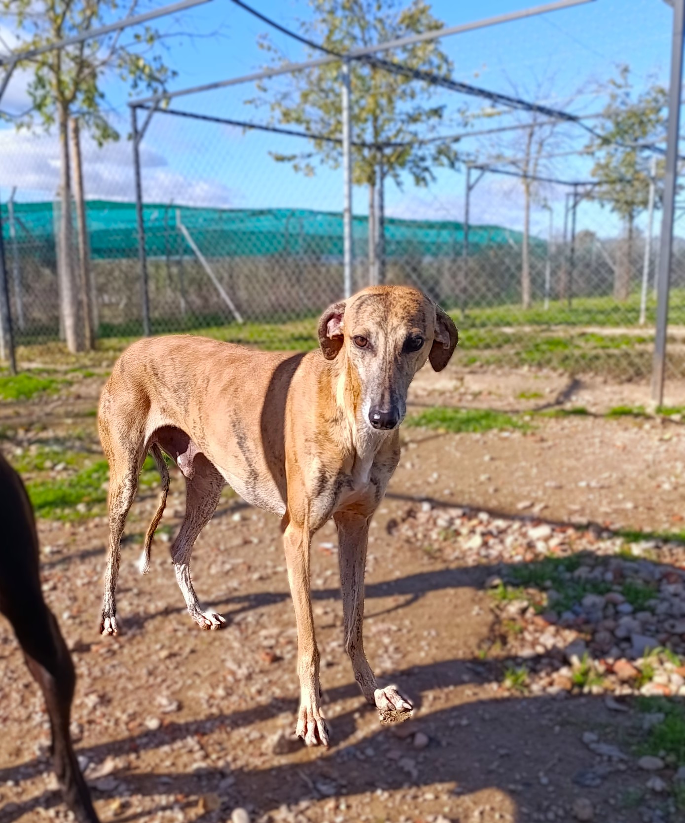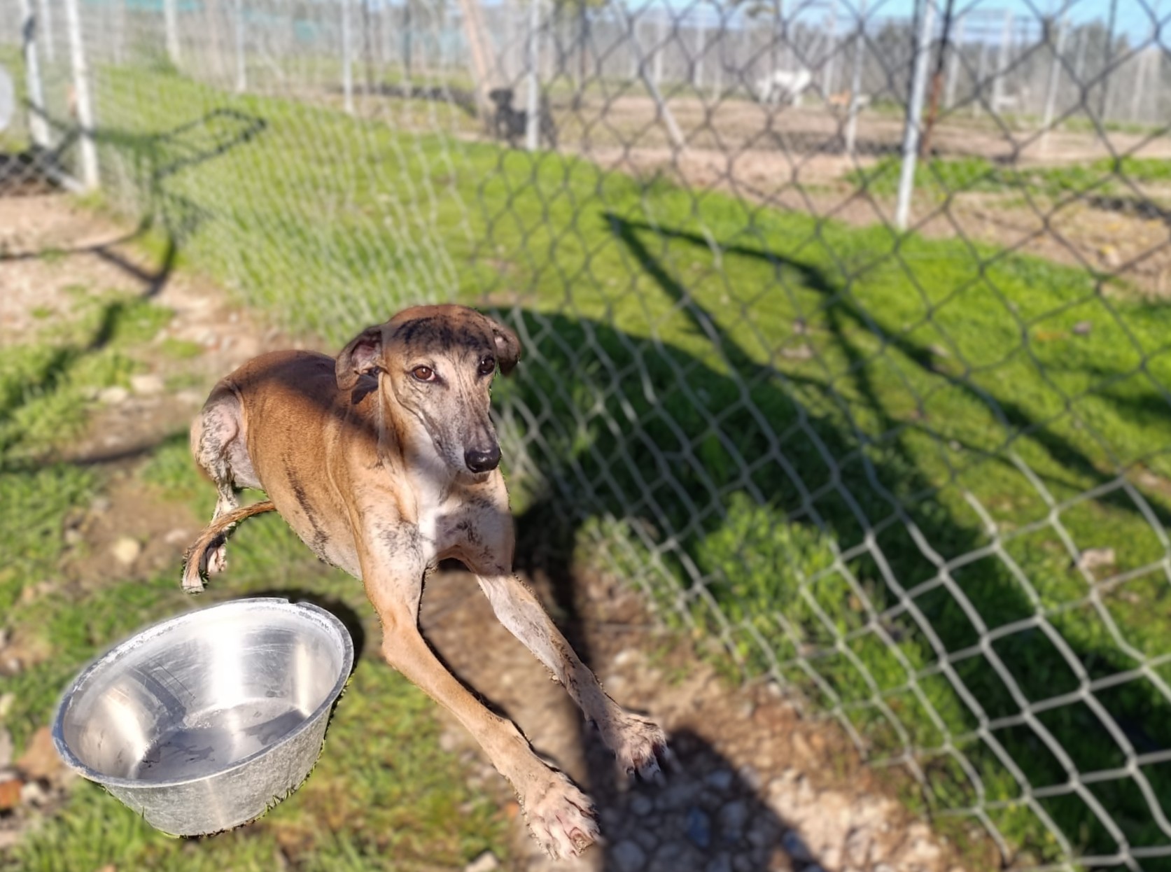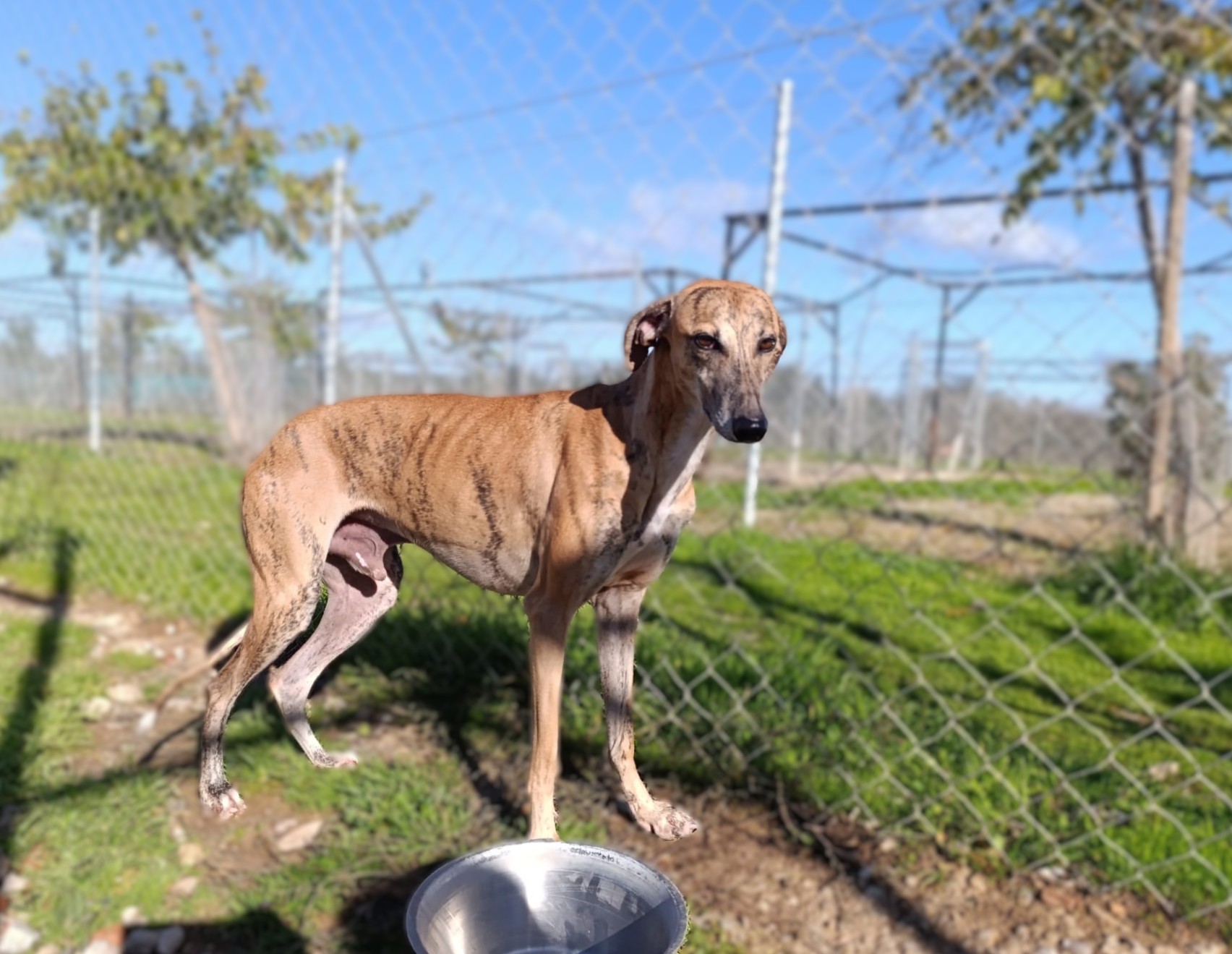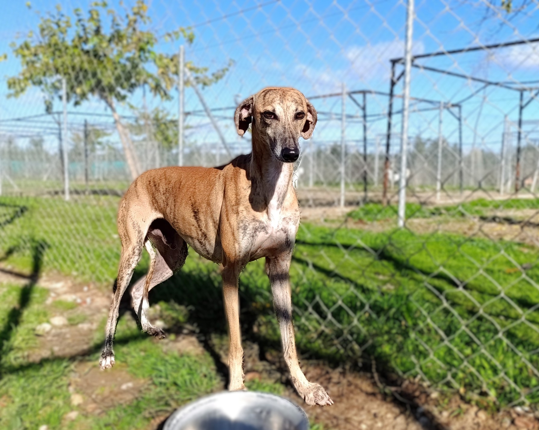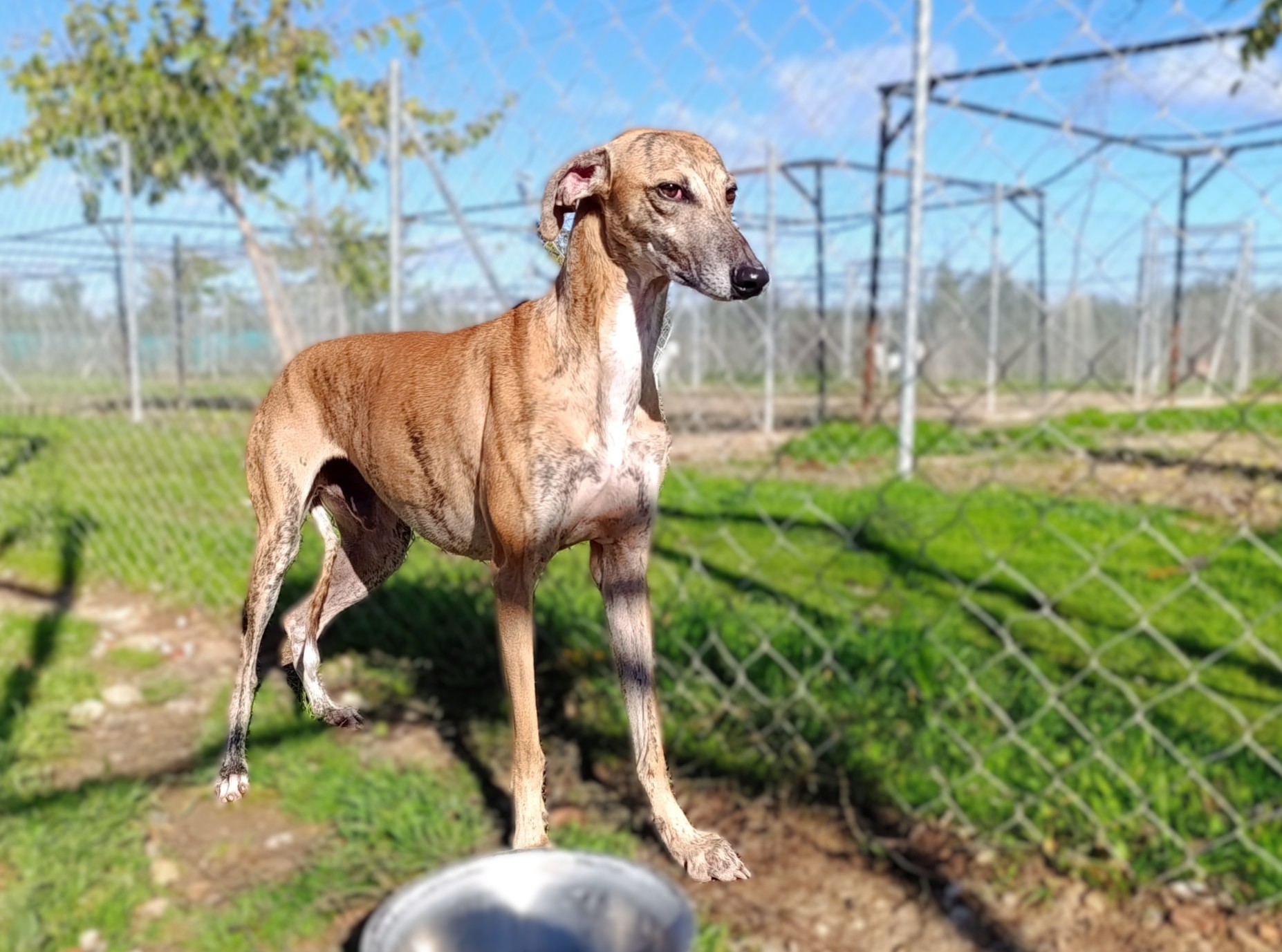 Elian is een schichtige windhond. In het begin is hij erg onzeker, wantrouwt mensen en blaft, hoewel zodra je zijn ren betreedt, hij gewoon wegloopt en stopt met blaffen zonder ooit agressief te zijn. Hij was gewoon nooit goed behandeld door de jager die hem heeft achtergelaten en leert nu vanaf nul hoe hij met mensen moet omgaan, maar in de tijd dat hij in het asiel is, zien we veel verbetering. Hij vertrouwt de mensen die hij dagelijks ziet, is veel socialer en neemt normaal deel aan de dagelijkse routine van het asiel, hoewel hij altijd weer wantrouwig blaft bij nieuwe situaties of wanneer er iemand onbekends binnenkomt. Met andere honden is hij erg goed, sociaal, onderdanig. Hij is iets kleiner dan een Spaanse windhond.(20 kg). Voor gezinnen met ervaring en die bovendien een andere sociale hond thuis hebben die hem helpt sneller te leren en zich veilig te voelen.