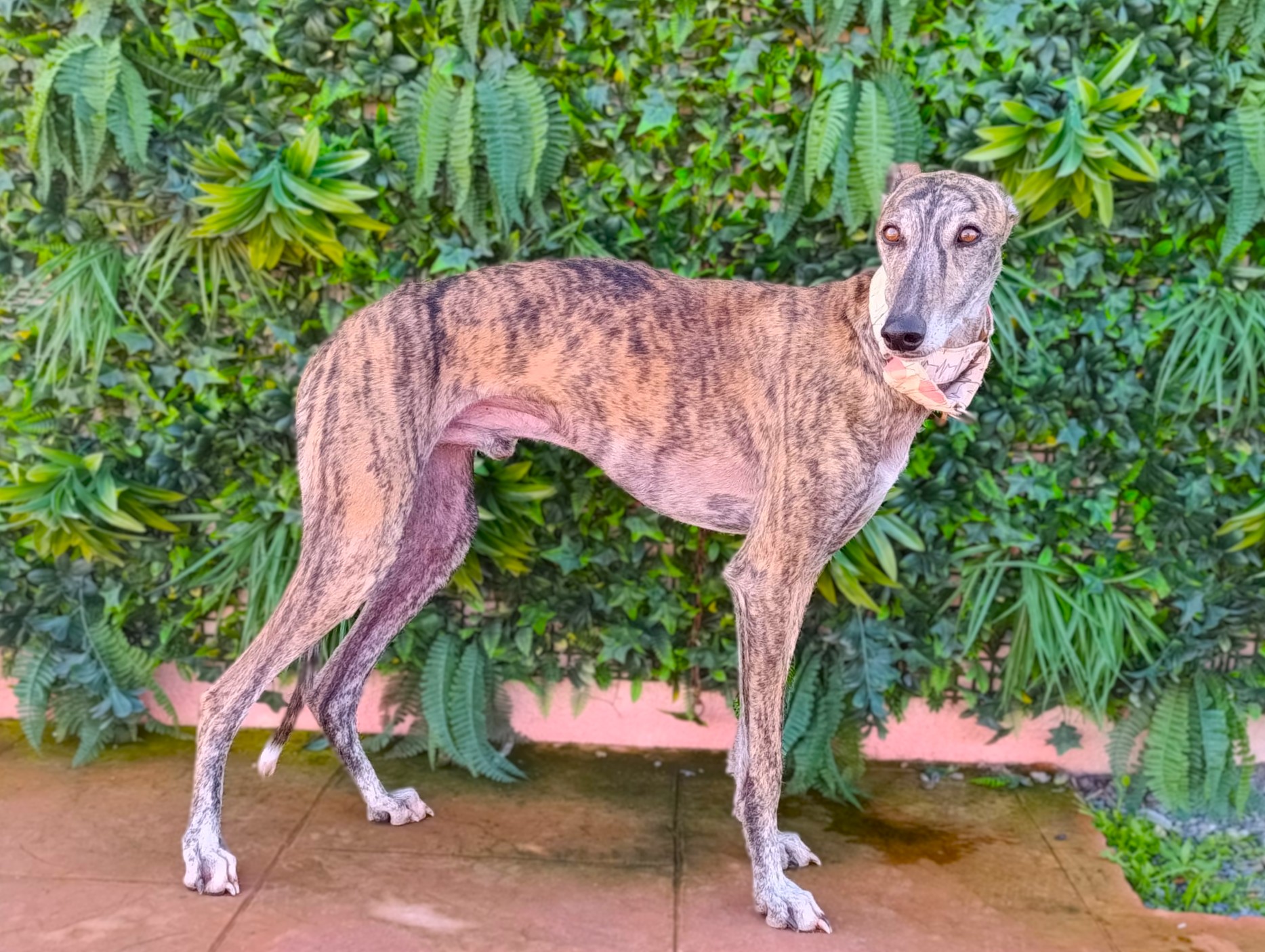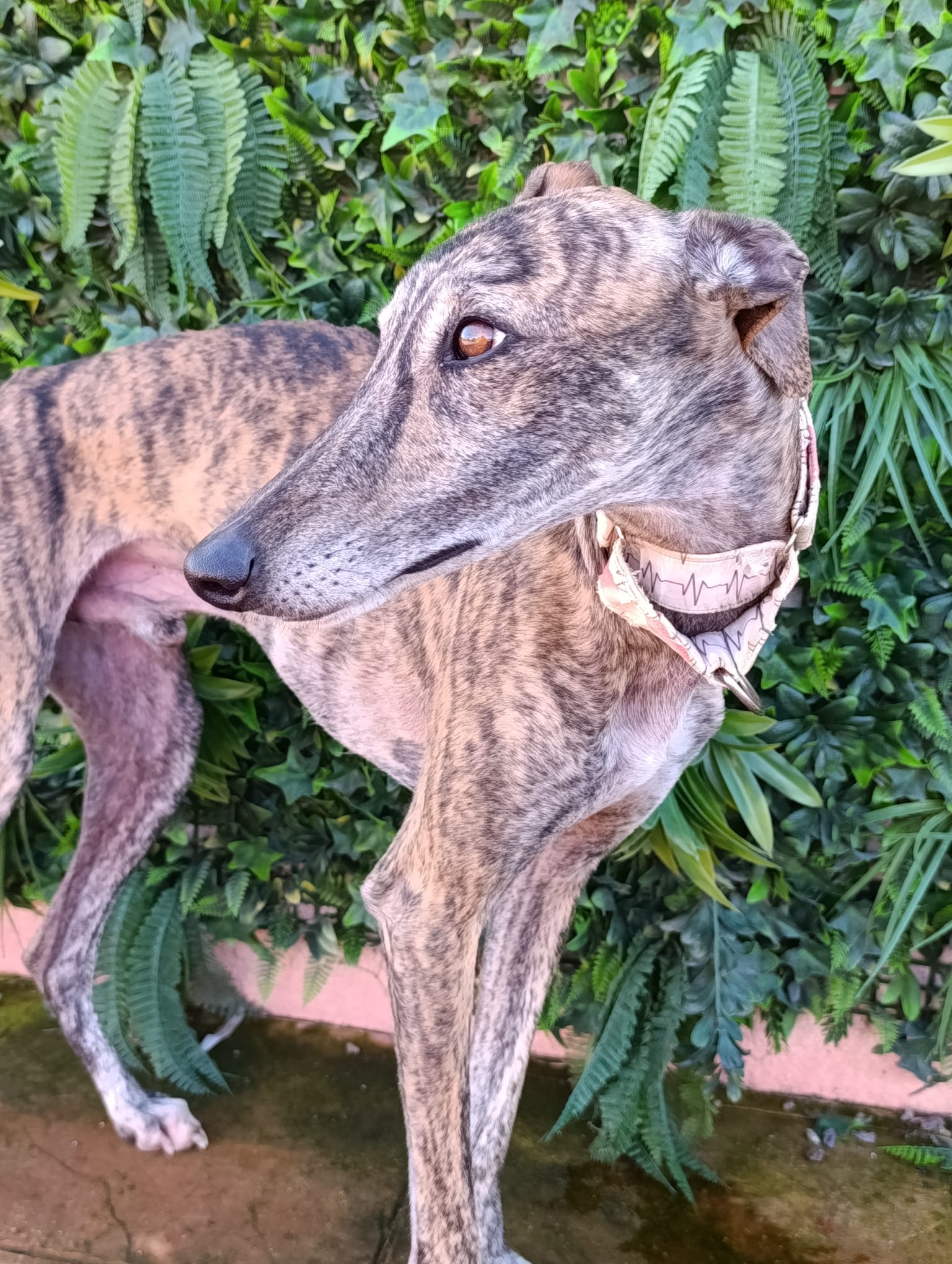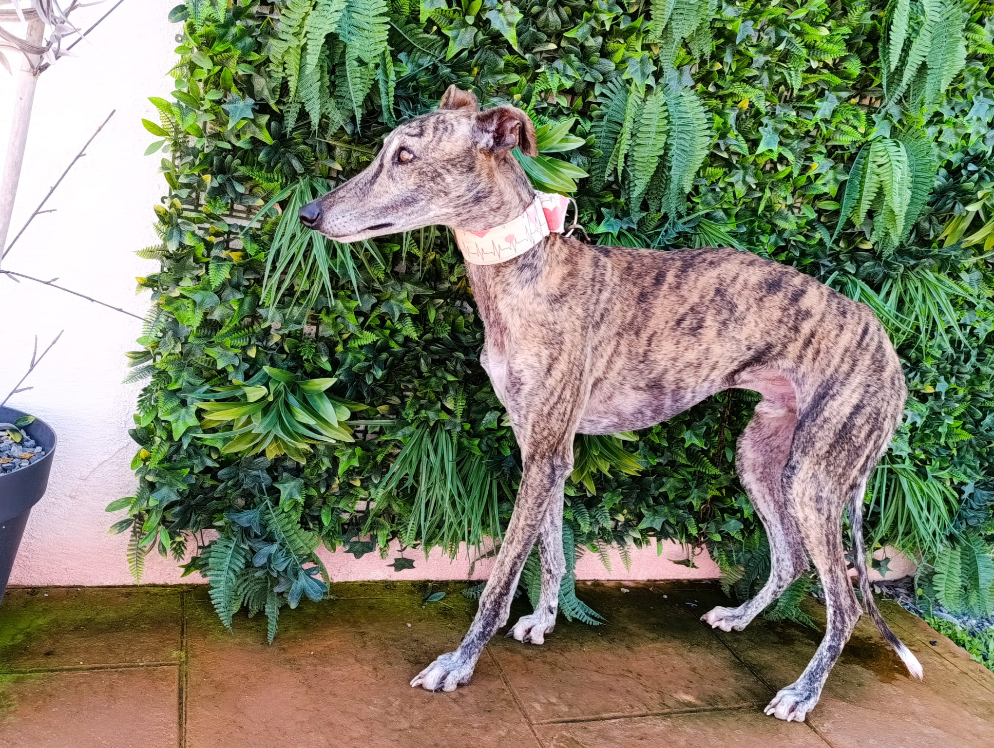 Berlin is een windhond met een zeer edel karakter. Hij is rustig en liefdevol. Wanneer hij alleen is, kan hij wat onzeker lijken, hij is absoluut geen moeilijke hond maar observeert alles heel zorgvuldig. Echter, wanneer hij gezelschap heeft, is hij erg gelukkig en zelfverzekerd, een zeer vrolijke en zelfs speelse hond. Hij is volgzaam, hij zou zich kunnen aanpassen om alleen te leven, maar we geven de voorkeur aan een huis waar een andere vriendelijke hond is die hem comfortabel en gelukkig laat voelen. Met andere honden is hij erg goed en sociaal.