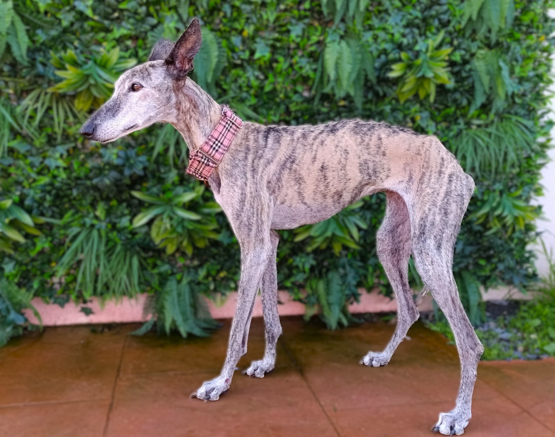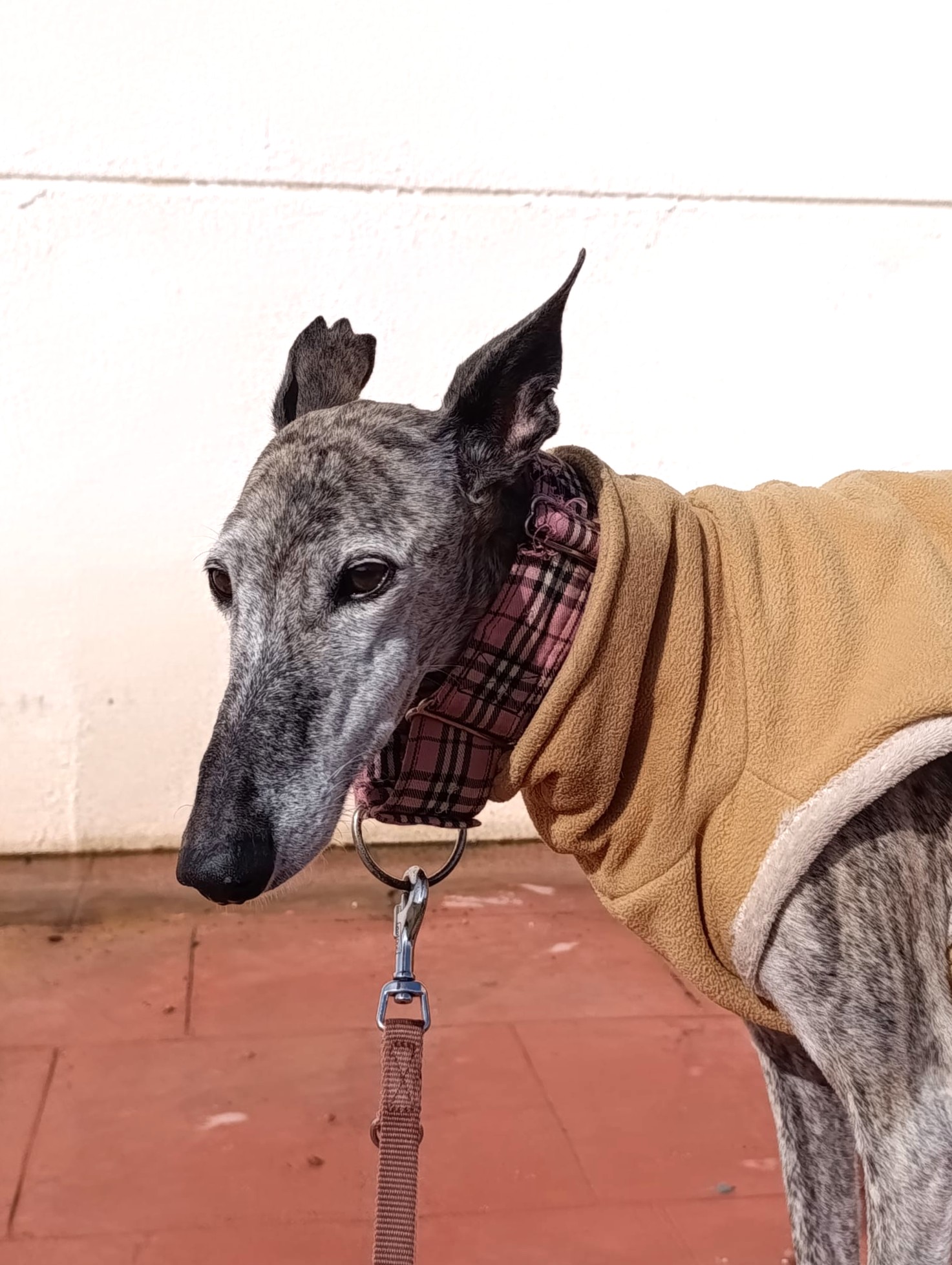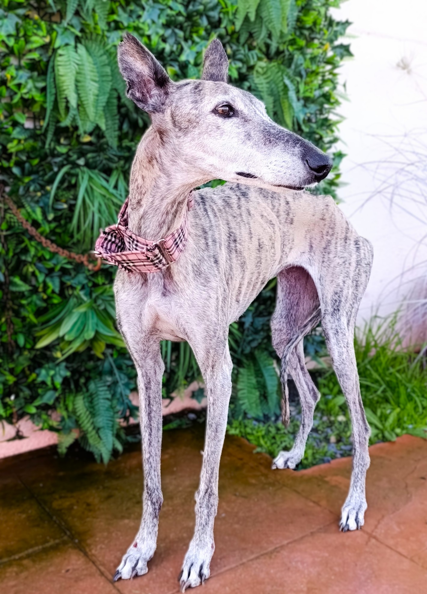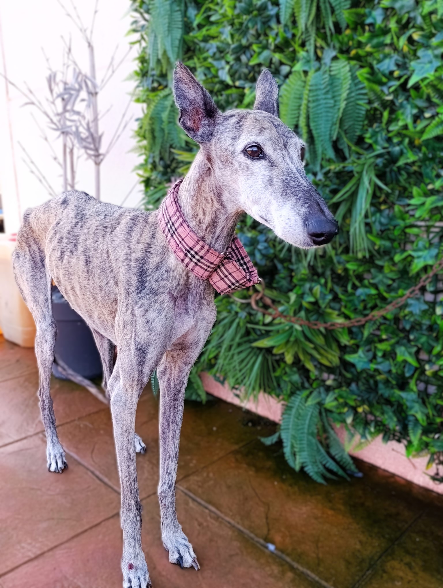 Ona is een knappe dame op leeftijd. In de shelter wordt ze beschreven als een engel, een prachtige windhond met een lief en aanhankelijk karakter.