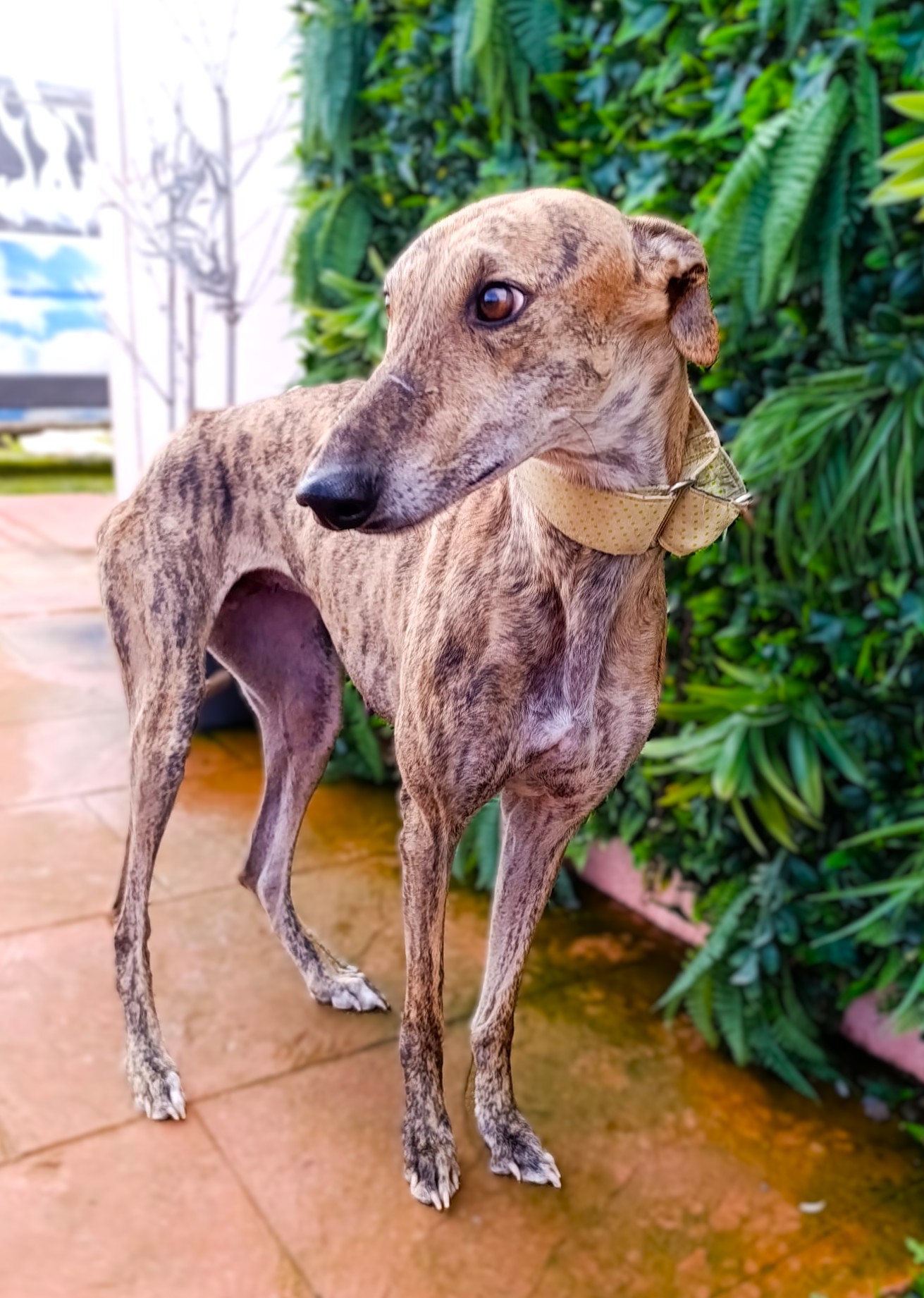 Prada is een hele lieve en sociale galgo, met een evenwichtig karakter. Ze vertoont in de shelter geen angsten. Ze is vrolijk en speels, maar gedraagt zich heel goed, ze heeft geen hoog activiteitsniveau. Met andere honden is ze sociaal en onderdanig. Ze is een vrij makkelijke galgo, geschikt voor beginners, en omdat ze erg sociaal en wat speels is, geven we de voorkeur dat ze wordt geadopteerd door een gezin dat al een andere vriendelijke hond heeft of, als dat niet het geval is, dat meestal thuis is en niet te rustig is.
