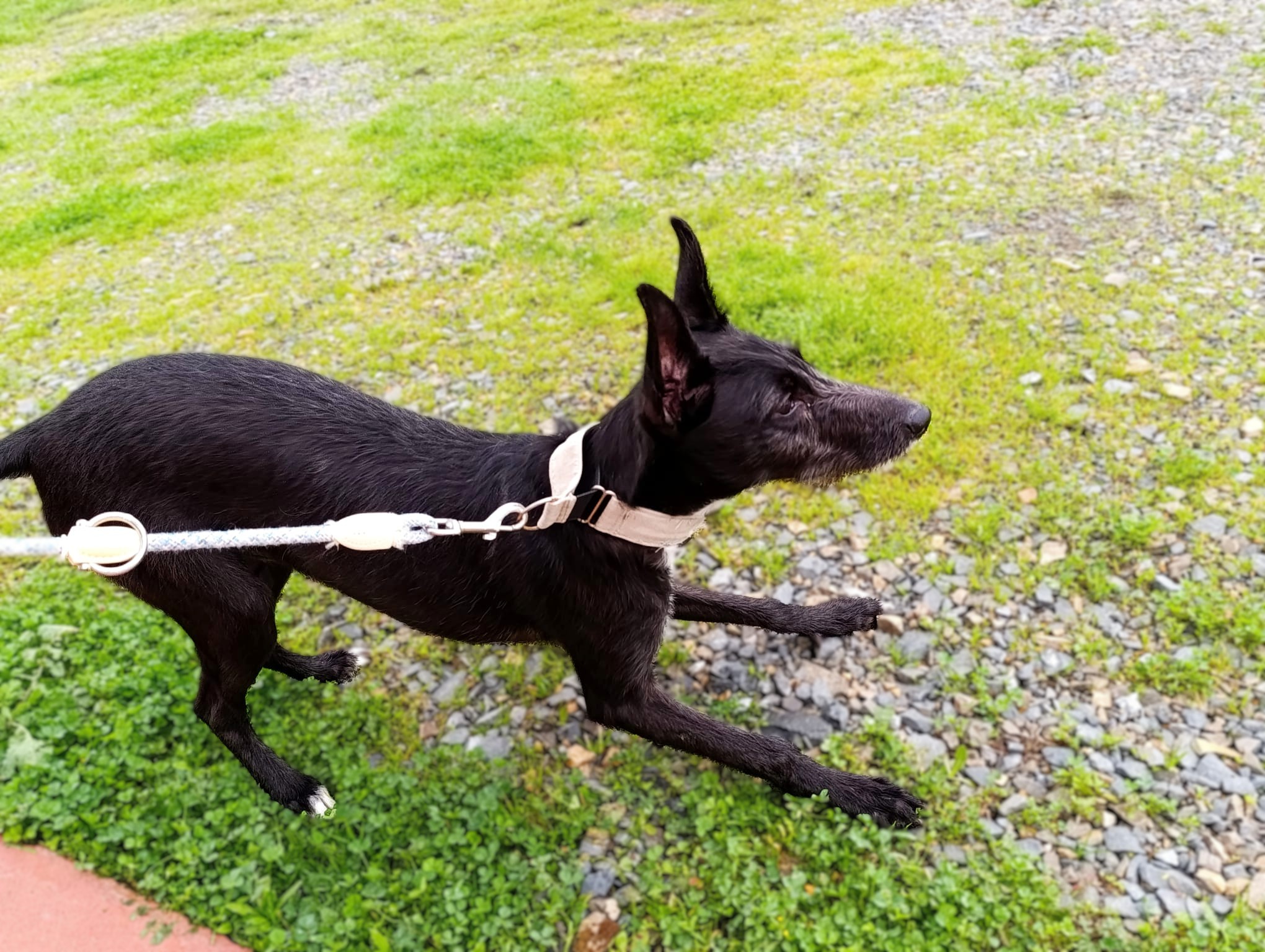 Loewe is een heel vriendelijk, vrolijk en sociaal hondje. Ze is in de shelter nergens bang voor, heel aanhankelijk en zoekt knuffels van iedereen. Ze is opgewekt en speels, een beetje onrustig maar gedraagt zich heel, heel goed. Ze heeft enkele weken alleen in een kennel doorgebracht uit voorzorg omdat ze nog geen vaccinaties had, en ze heeft niet gehuild of angst getoond terwijl ze alleen was. Met andere honden is ze heel goed, onderdanig en speels. Makkelijk, een vriendelijk en vrolijk hondje dat geschikt is voor beginners, redelijk actieve gezinnen en het is beter als ze een andere hond heeft om mee te spelen als ze niet veel activiteit kunnen bieden.