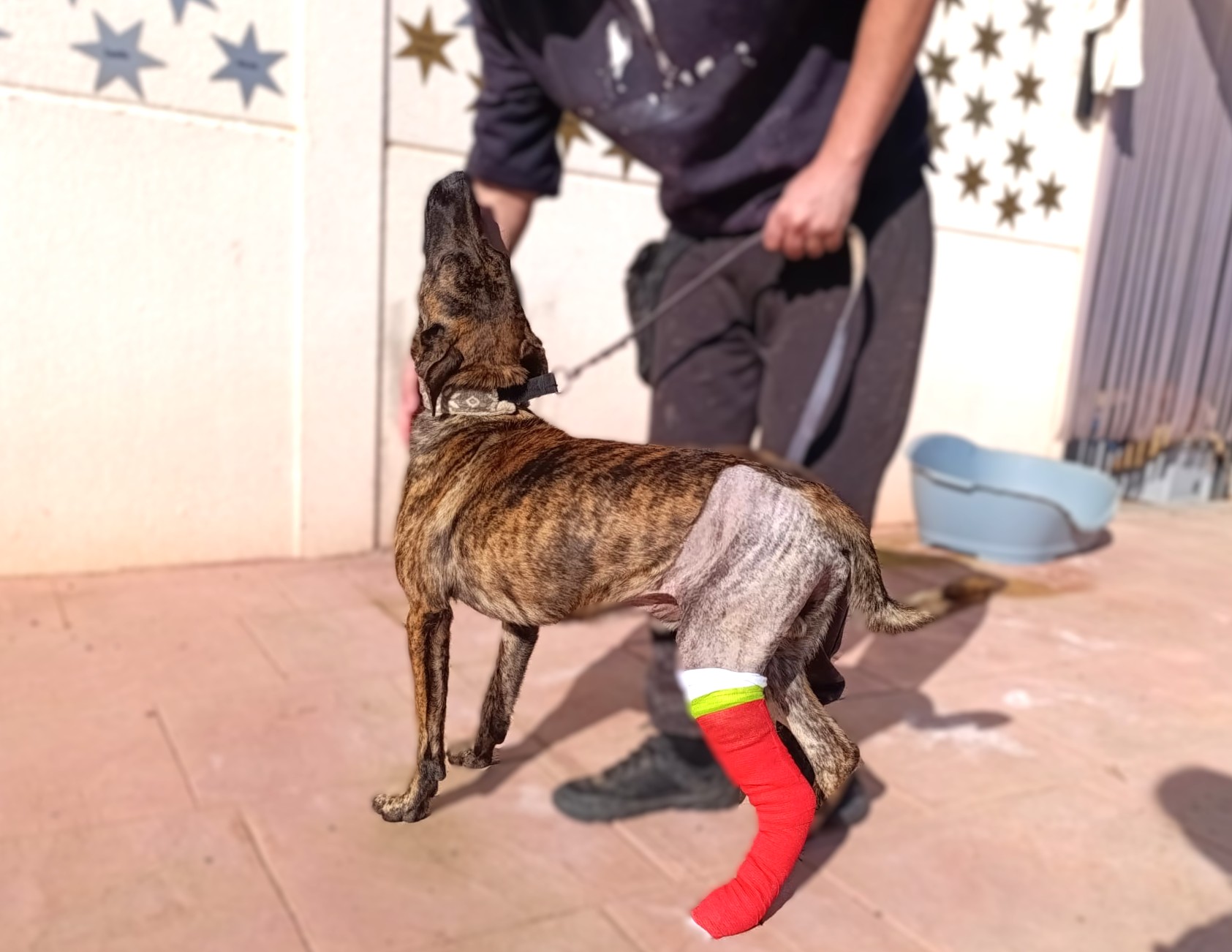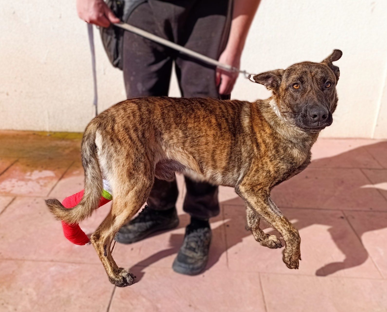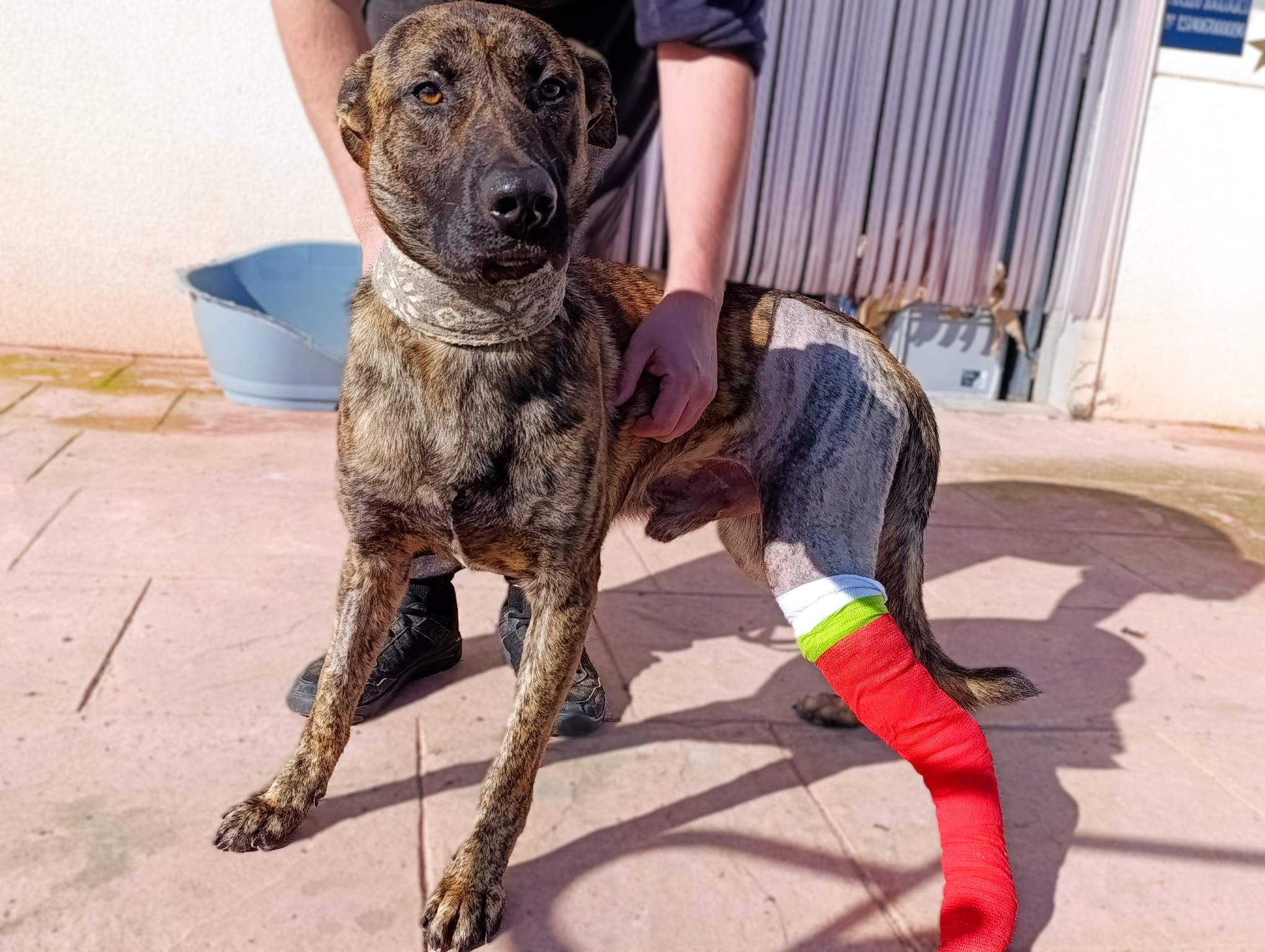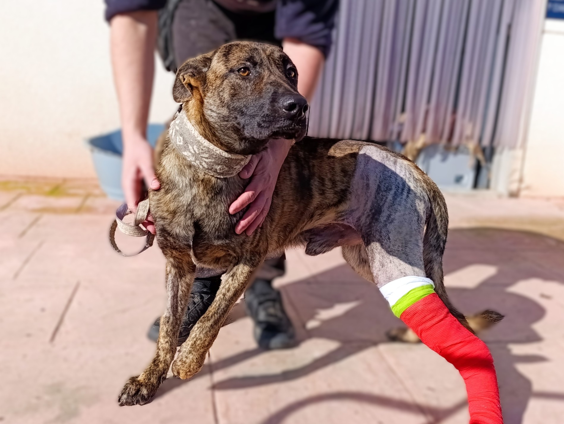 Panettone is verlaten gevonden met een gebroken poot zonder dat iemand hem te hulp kwam, veel pijn lijdend en erg koud.