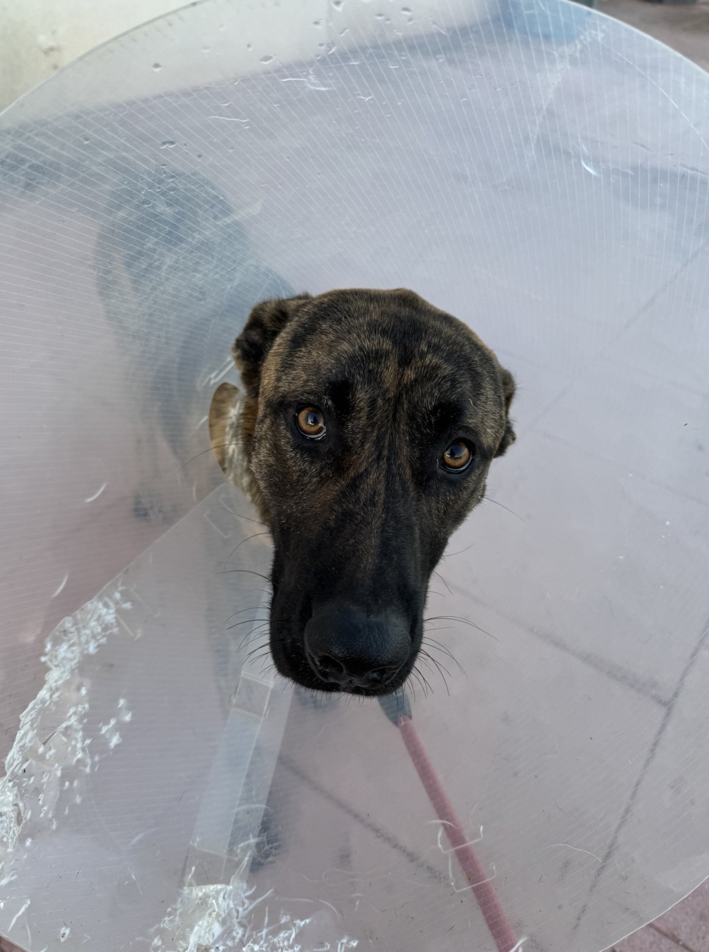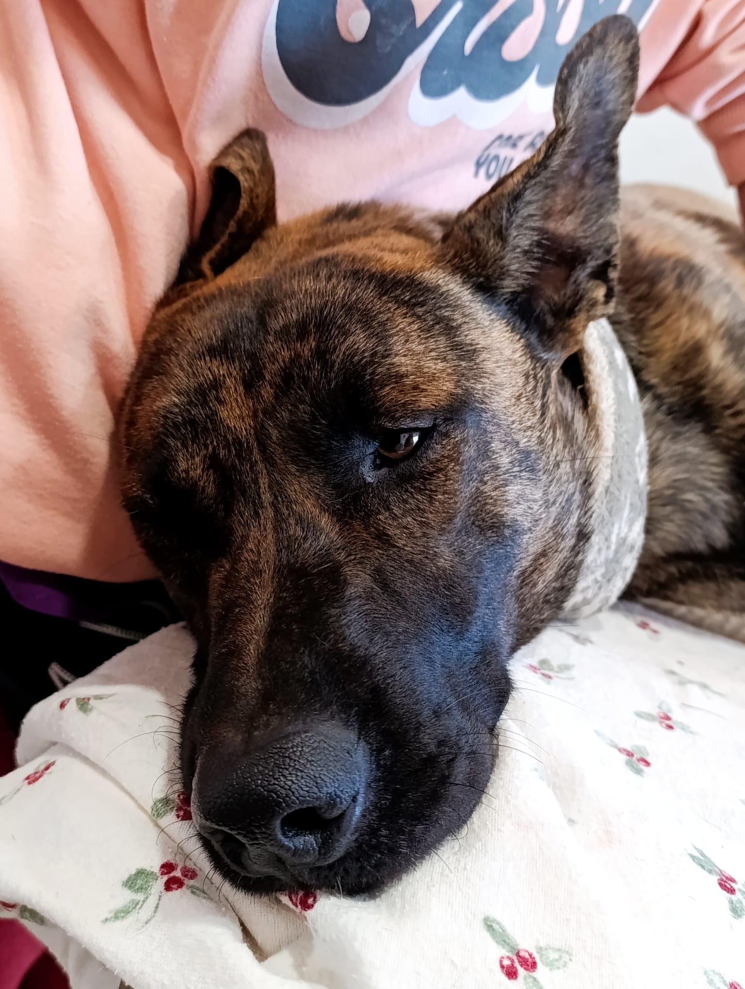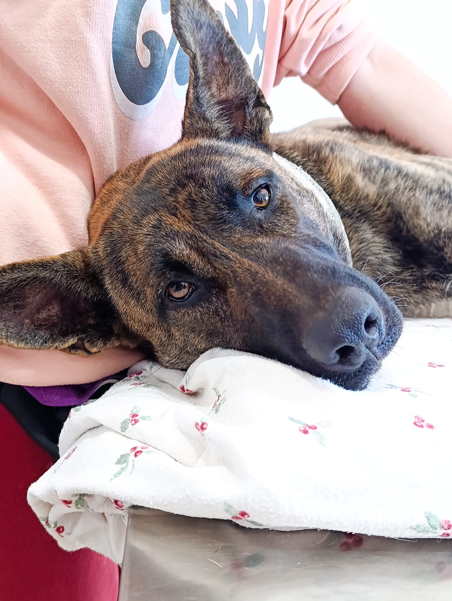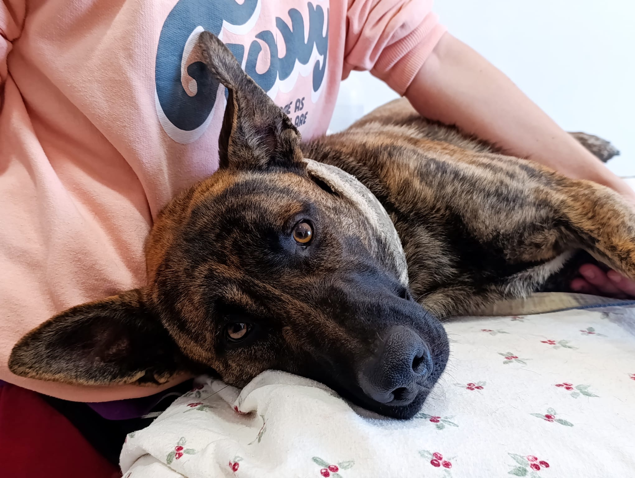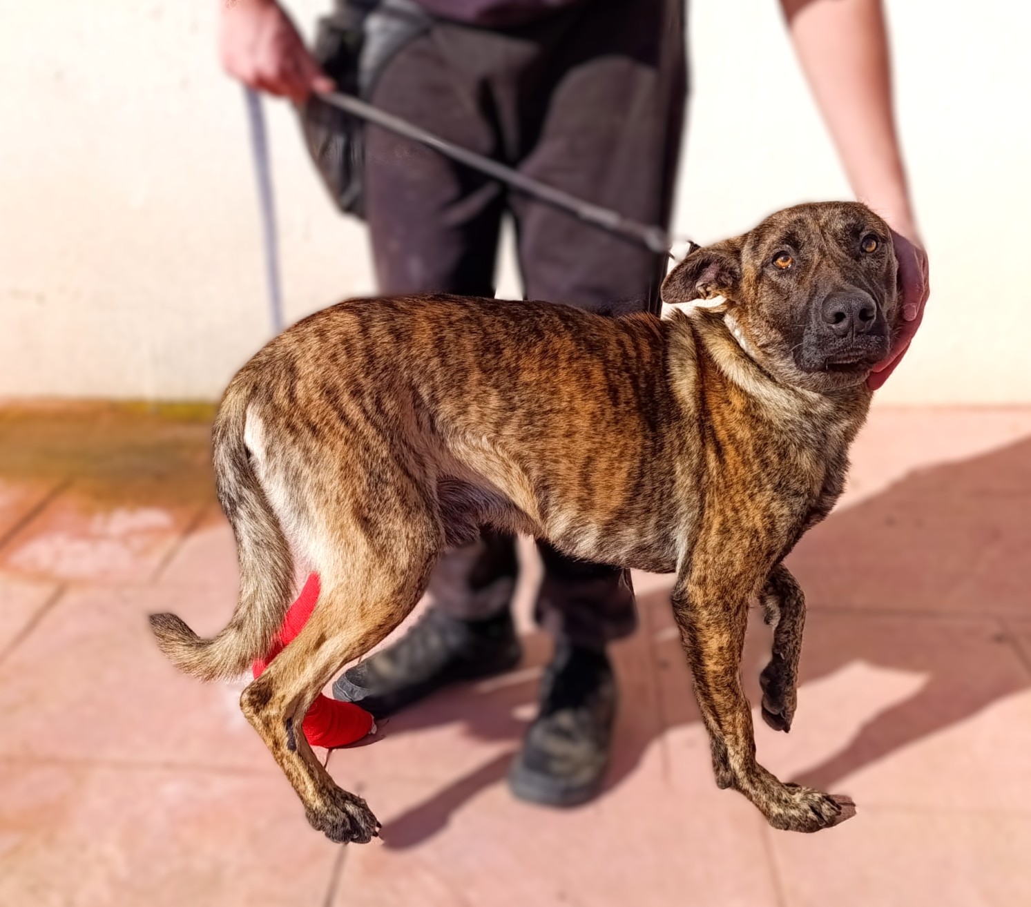 Panettone is verlaten gevonden met een gebroken poot zonder dat iemand hem te hulp kwam, veel pijn lijdend en erg koud.