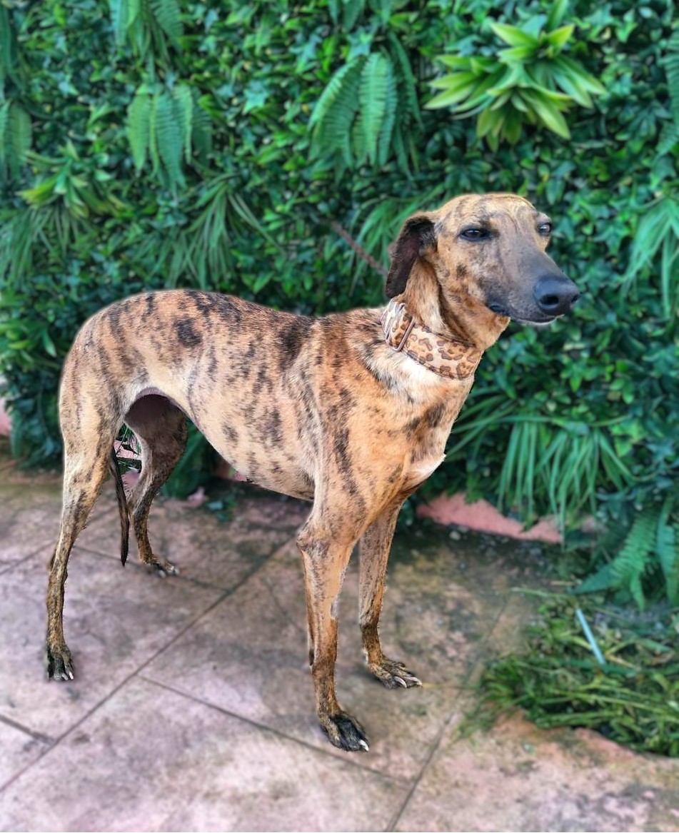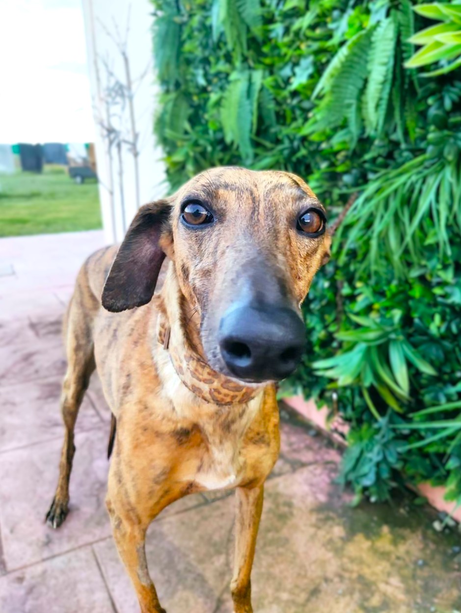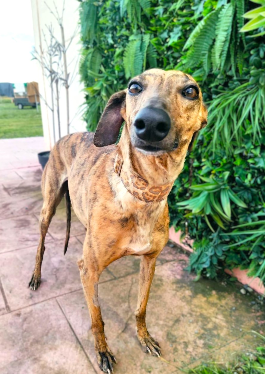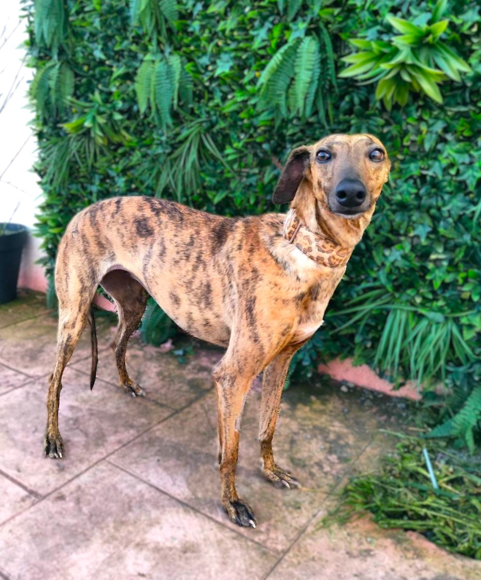 Ally is een sociale windhond met een zeer liefdevol karakter. Ze kwam wat verlegen aan, maar heeft zich heel goed aangepast, ze heeft alleen wat tijd nodig en leert meteen te vertrouwen. Ze is erg vriendelijk, vindt het heerlijk dat iedereen haar aanraakt en aait, en terwijl je in haar park bent, wacht ze geduldig op het moment dat je weer aandacht aan haar besteedt en haar opnieuw aait. Met andere honden is ze heel goed, ze kan goed omgaan met veel actievere honden, ze is wat speels maar gedraagt zich heel, heel goed, de hele dag rustig, behalve tijdens een speelmoment. Makkelijk, geschikt voor beginners, beter met andere honden zodat ze zich snel kan aanpassen.