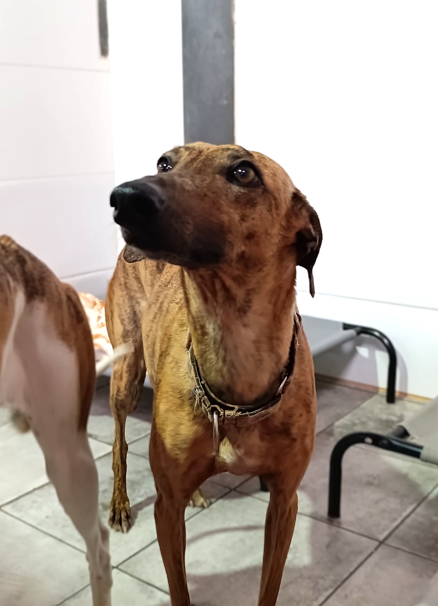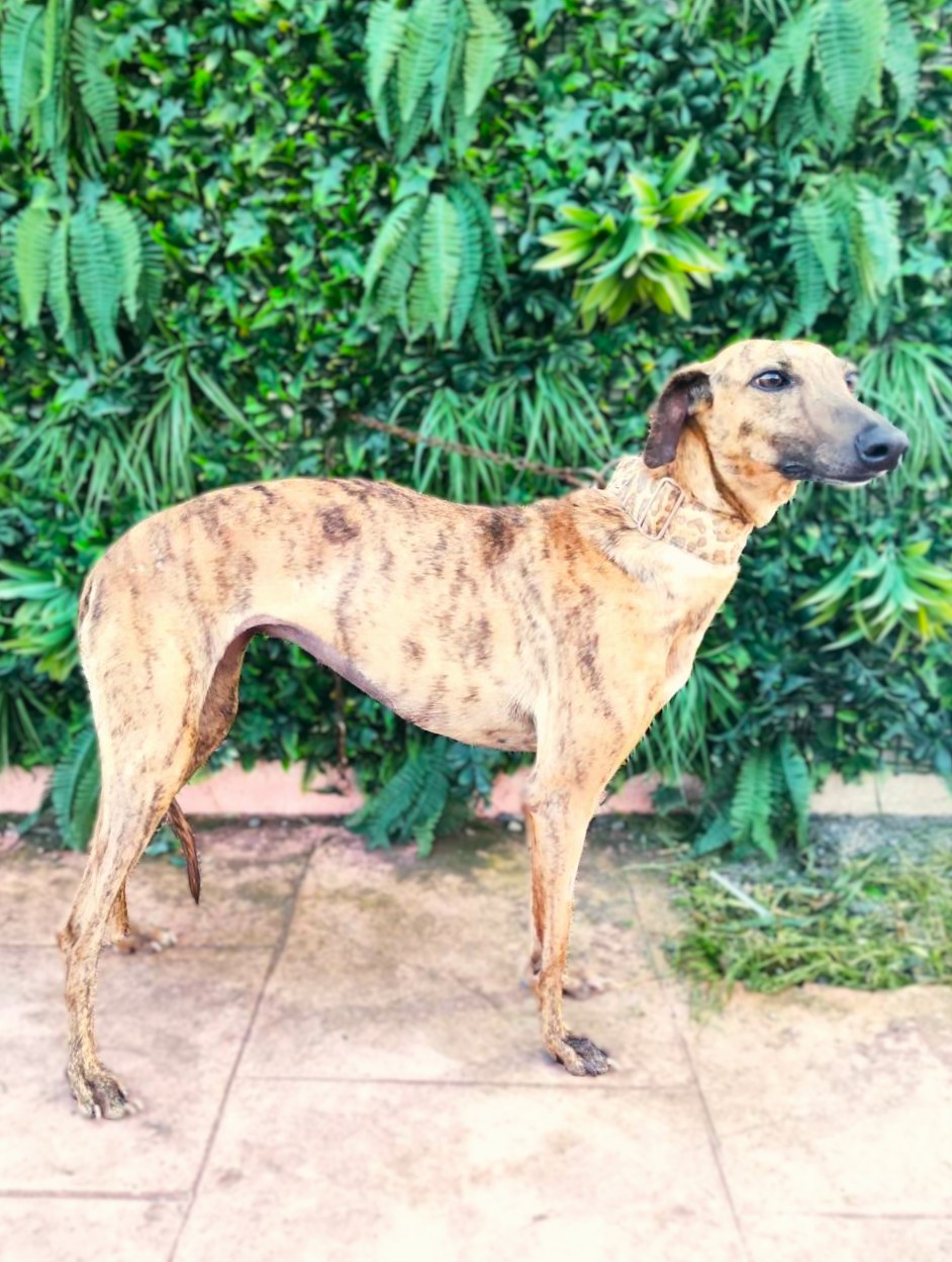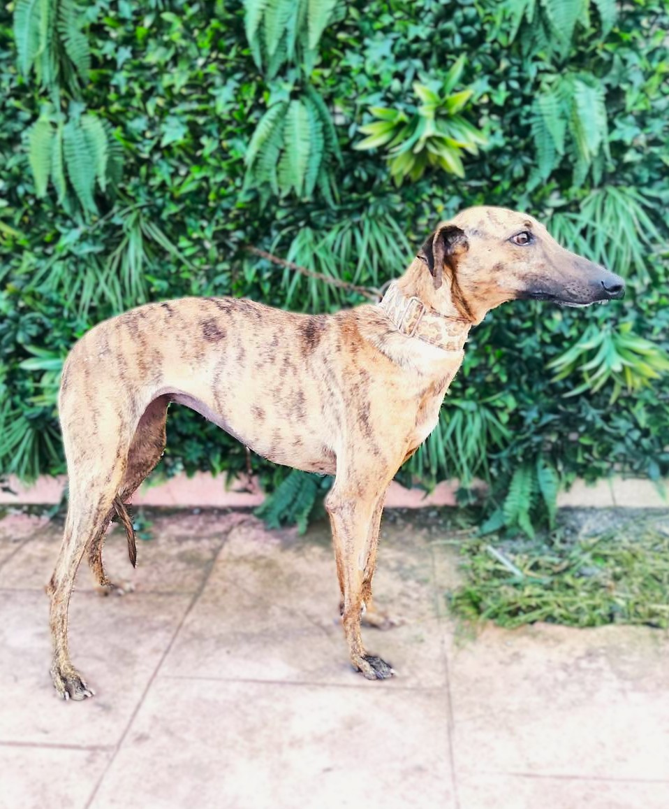 Ally is een sociale windhond met een zeer liefdevol karakter. Ze kwam wat verlegen aan, maar heeft zich heel goed aangepast, ze heeft alleen wat tijd nodig en leert meteen te vertrouwen. Ze is erg vriendelijk, vindt het heerlijk dat iedereen haar aanraakt en aait, en terwijl je in haar park bent, wacht ze geduldig op het moment dat je weer aandacht aan haar besteedt en haar opnieuw aait. Met andere honden is ze heel goed, ze kan goed omgaan met veel actievere honden, ze is wat speels maar gedraagt zich heel, heel goed, de hele dag rustig, behalve tijdens een speelmoment. Makkelijk, geschikt voor beginners, beter met andere honden zodat ze zich snel kan aanpassen.