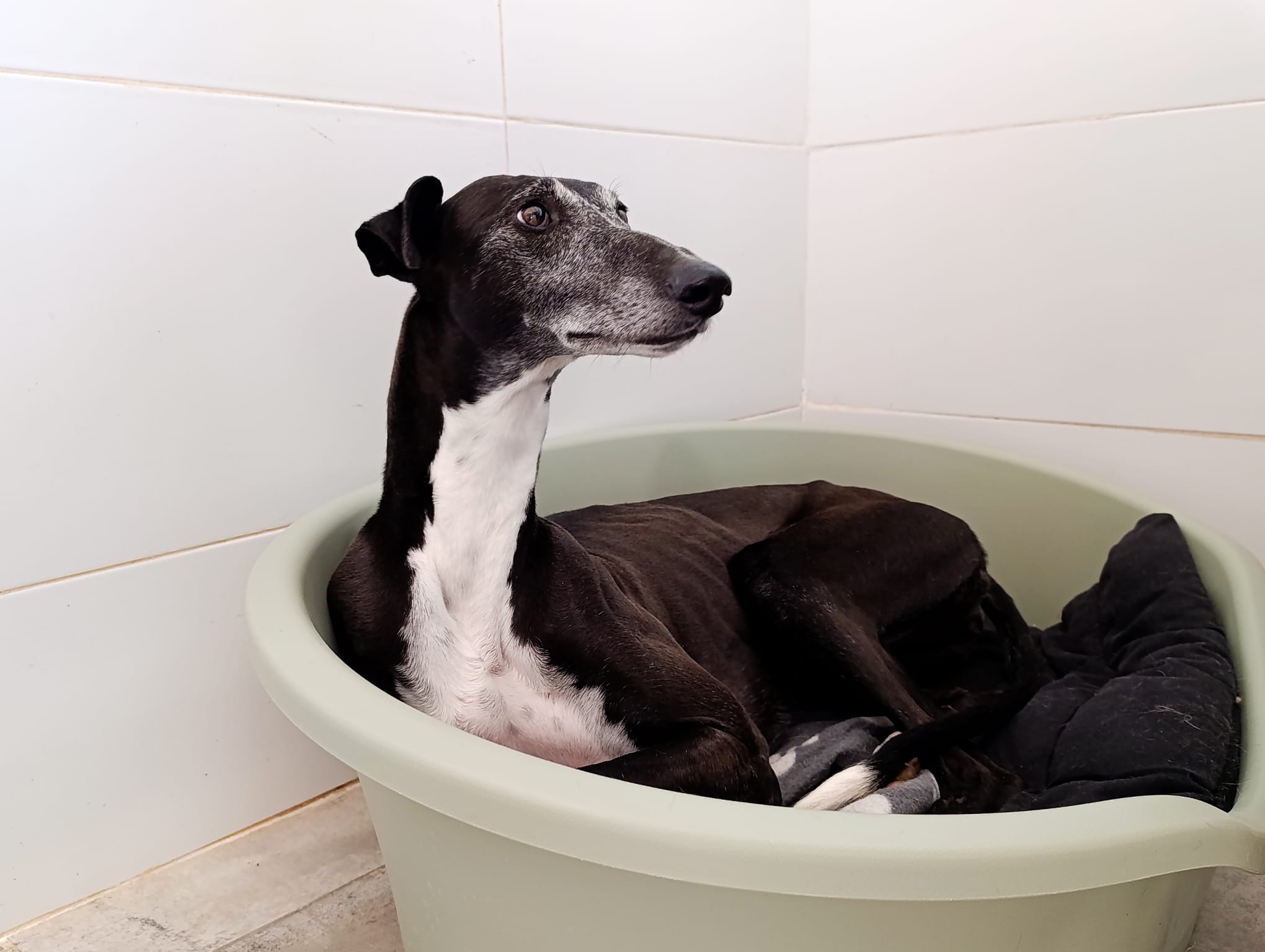 Cherry is een vriendelijke, sociale en nobele windhond. Toen we haar redde leek ze een beetje onzeker, maar ze paste zich snel aan het asiel en haar verzorgers aan, ze is vriendelijk en sociaal tegen iedereen, altijd blij met haar staart bewegend en dankbaar voor de zorg. Alleen wanneer ze iemand nieuw ontmoet en er geen andere honden in de buurt zijn, kan ze zich weer onzeker voelen, maar ze vertoont geen angst, ze heeft gewoon wat tijd nodig om zich aan te passen. Met andere honden is ze goed, sociaal, onderdanig.
