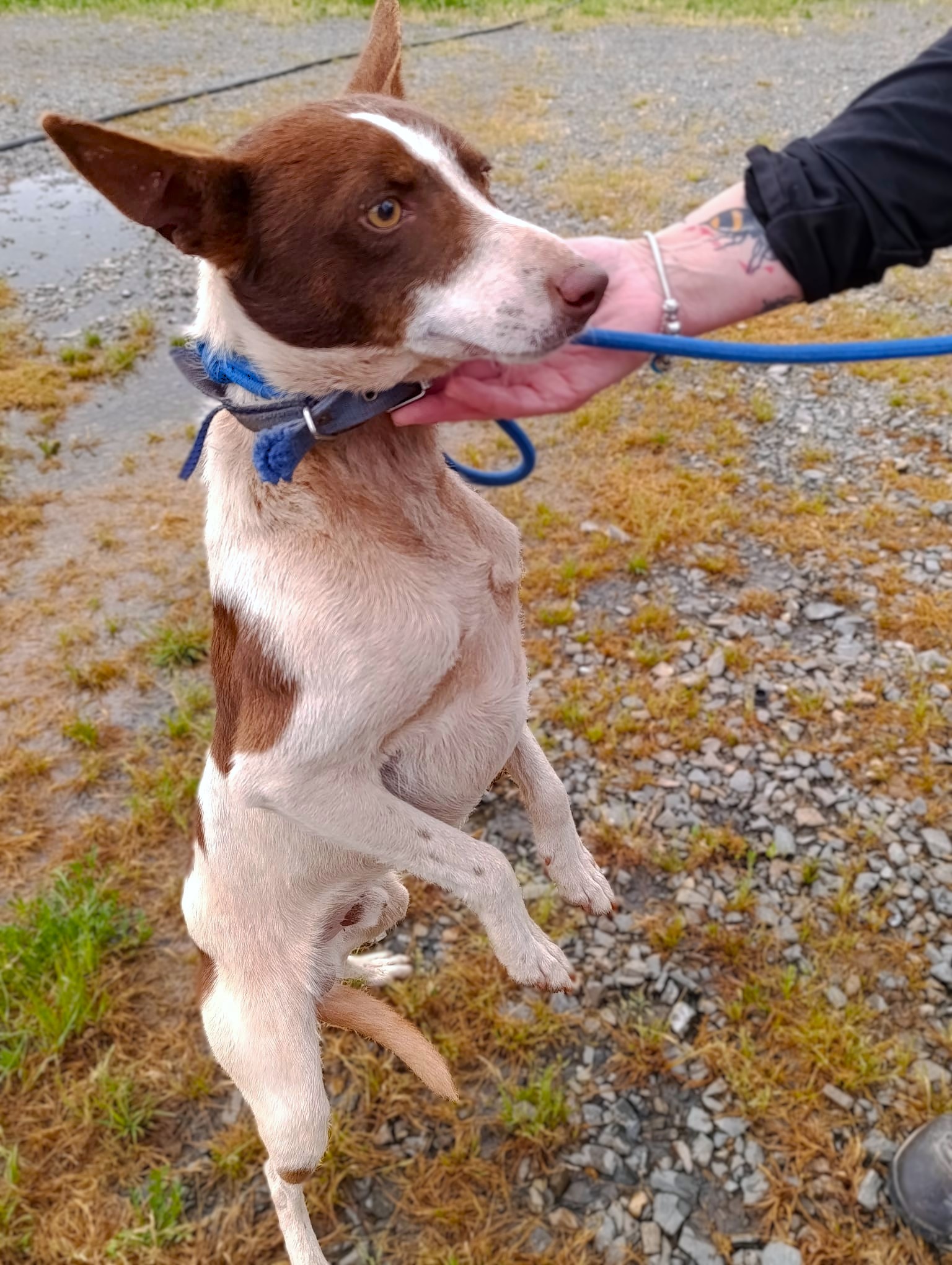 Het is een zeer vriendelijke hond, met een zeer vrolijk en sociaal karakter. Hij is in de shelter nergens bang voor, hij houdt ervan om met mensen om te gaan, zelfs als ze onbekend zijn, hij wordt altijd erg blij en begroet vrolijk terwijl hij op zoek is naar knuffels. Hij heeft een actief karakter, hij houdt van spelen, maar in de kennel gedraagt hij zich heel goed zonder te blaffen of angst te tonen. Met andere honden is hij zeer goed, sociaal en onderdanig. Gemakkelijk, geschikt voor actieve gezinnen die een andere speelse hond hebben om mee te spelen, als ze een tuin hebben zou dat geweldig voor hem zijn.