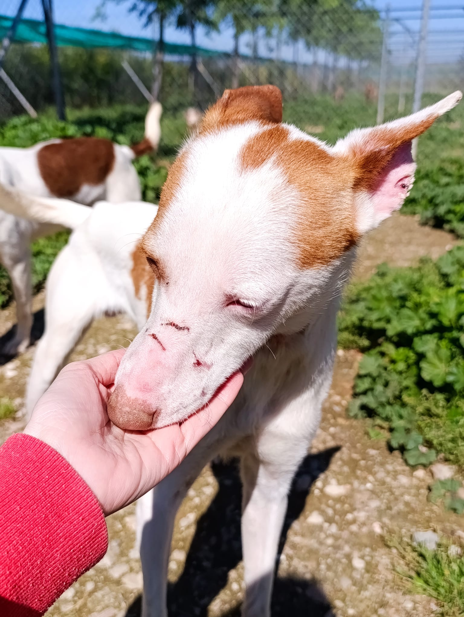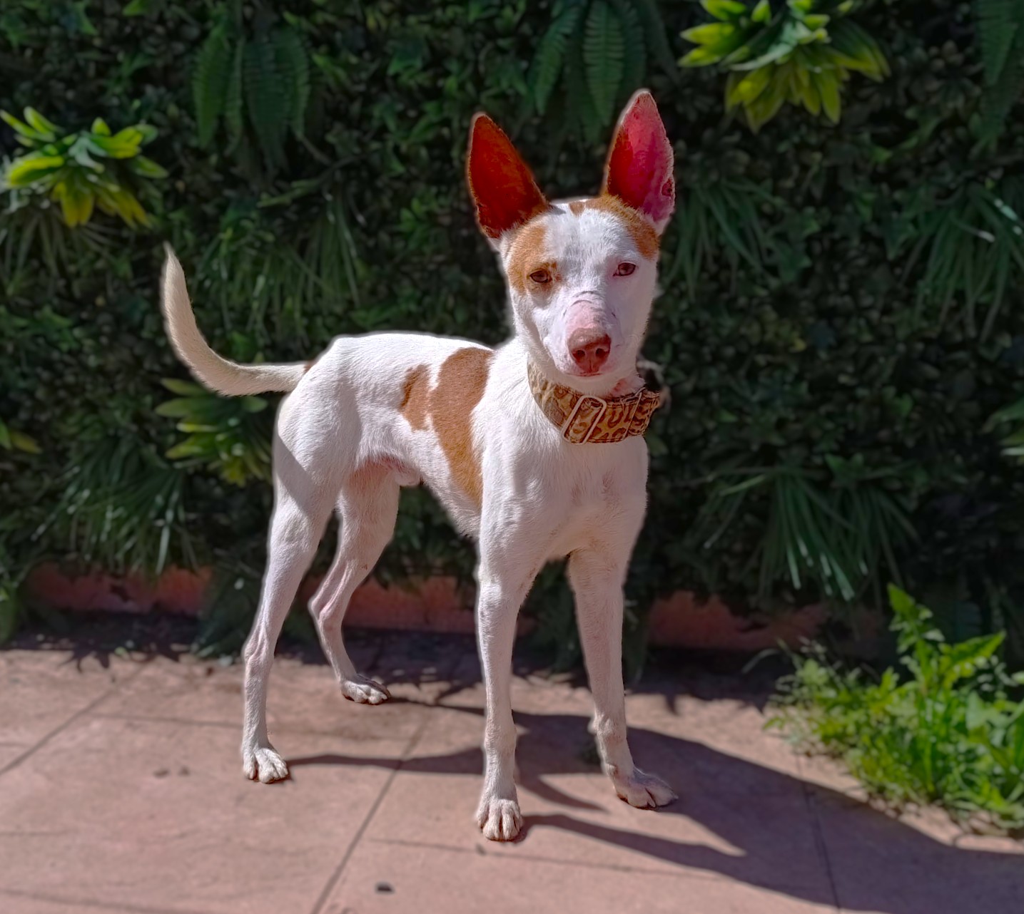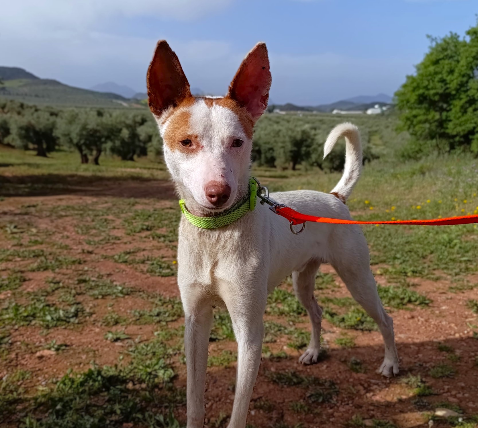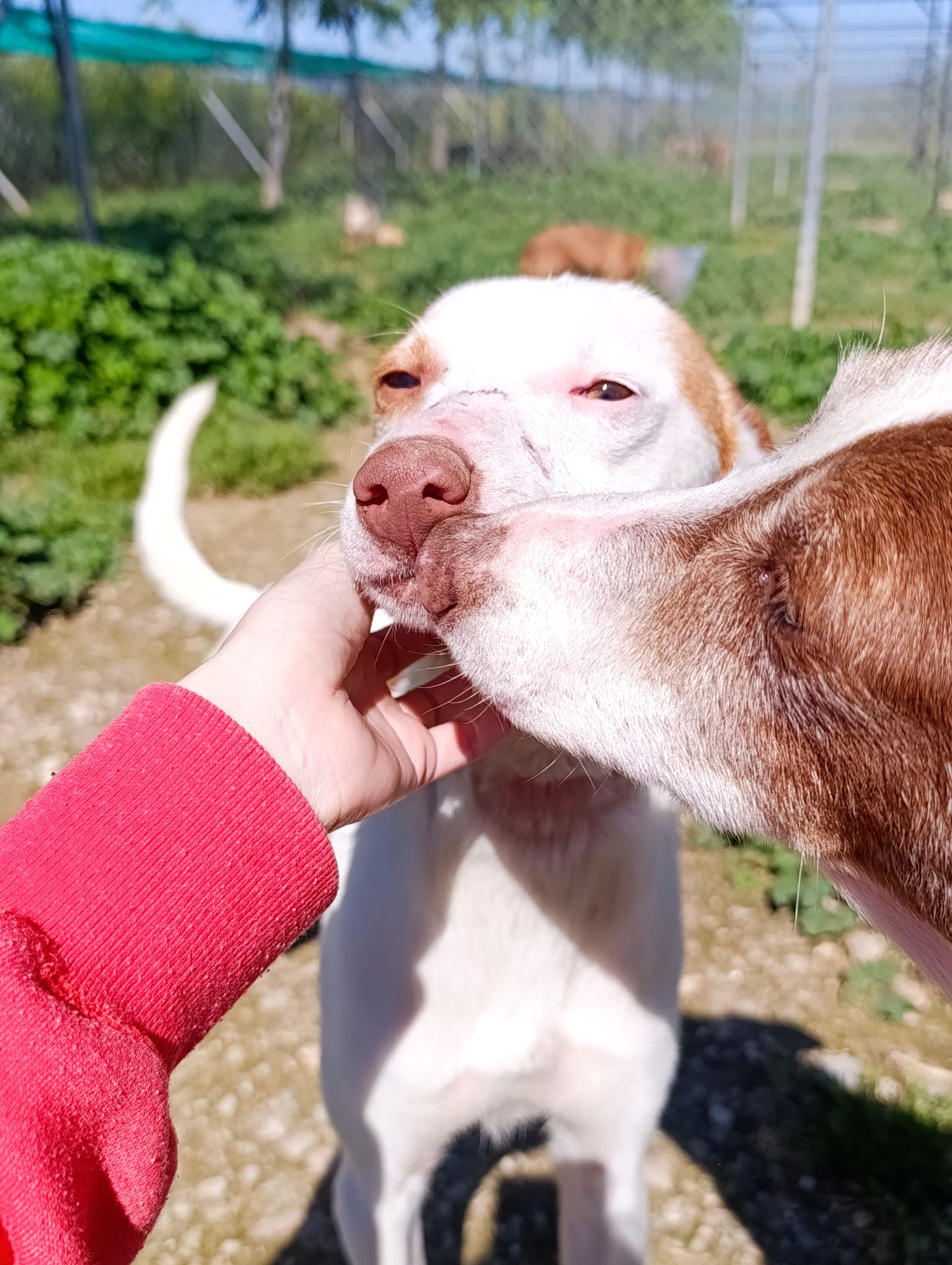 Hij is een heel sympathiek, vrolijk en aanhankelijk hondje. Hij is actief en speels, is altijd blij en geniet van zijn nieuwe leven in het opvangcentrum, op zoek naar knuffels van iedereen die in de buurt komt. En hoewel hij speels is, als de andere honden niet met hem willen spelen, stoort hij zich er niet aan en blijft rustig wandelen of gewoon liggen in de zon, hoewel we weten dat als hij met een actievere hond in een huis zou zijn, hij veel meer zouden spelen. Als hij zich verveelt, begint hij door het hele park te snuffelen op zoek naar kleine insecten alsof hij aan het jagen is, hij heeft nog steeds een sterk jachtinstinct. Het is een zeer grappige en bovendien heel mooie hond, hij heeft een vrij gemakkelijk karakter, zelfs geschikt voor beginners. Omdat hij speels is, raden we aan dat hij beter bij gezinnen past die al een andere hond thuis hebben en die niet te rustig zijn, aangezien hij erg zal genieten van het gezelschap van andere honden en zelfs kinderen.