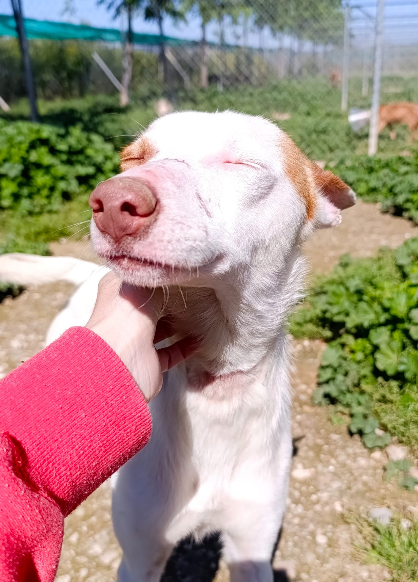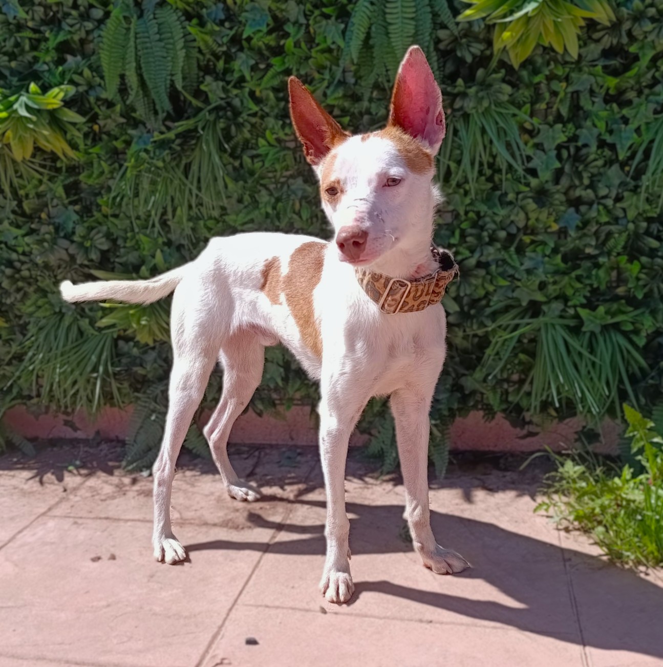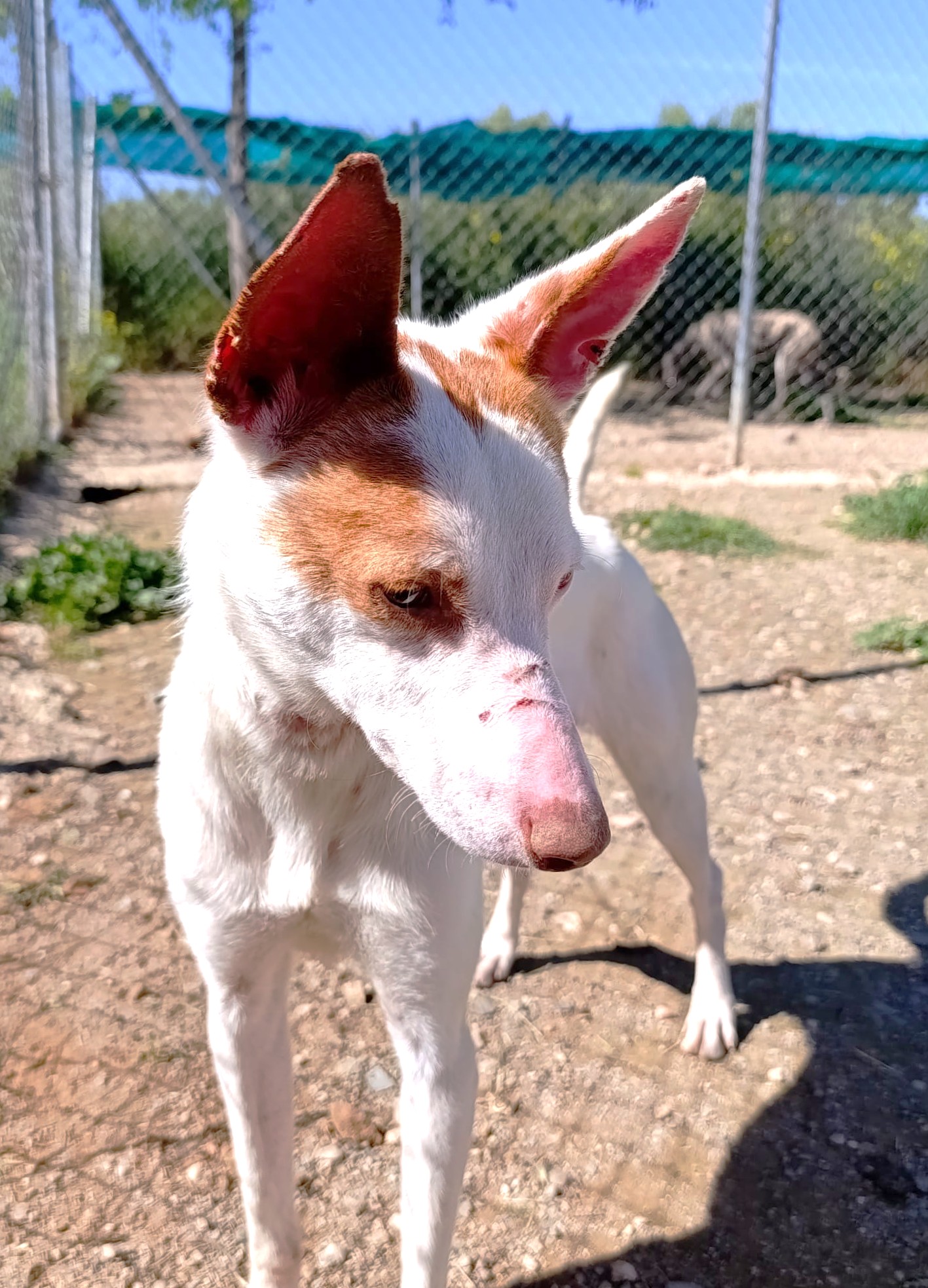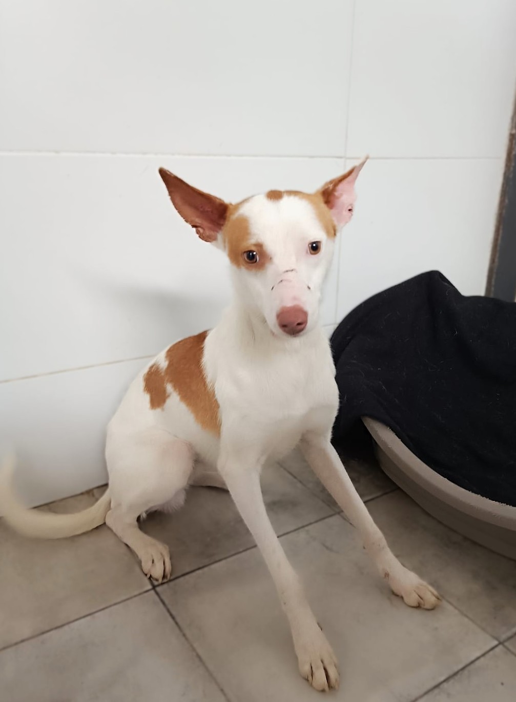 Hij is een heel sympathiek, vrolijk en aanhankelijk hondje. Hij is actief en speels, is altijd blij en geniet van zijn nieuwe leven in het opvangcentrum, op zoek naar knuffels van iedereen die in de buurt komt. En hoewel hij speels is, als de andere honden niet met hem willen spelen, stoort hij zich er niet aan en blijft rustig wandelen of gewoon liggen in de zon, hoewel we weten dat als hij met een actievere hond in een huis zou zijn, hij veel meer zouden spelen. Als hij zich verveelt, begint hij door het hele park te snuffelen op zoek naar kleine insecten alsof hij aan het jagen is, hij heeft nog steeds een sterk jachtinstinct. Het is een zeer grappige en bovendien heel mooie hond, hij heeft een vrij gemakkelijk karakter, zelfs geschikt voor beginners. Omdat hij speels is, raden we aan dat hij beter bij gezinnen past die al een andere hond thuis hebben en die niet te rustig zijn, aangezien hij erg zal genieten van het gezelschap van andere honden en zelfs kinderen.