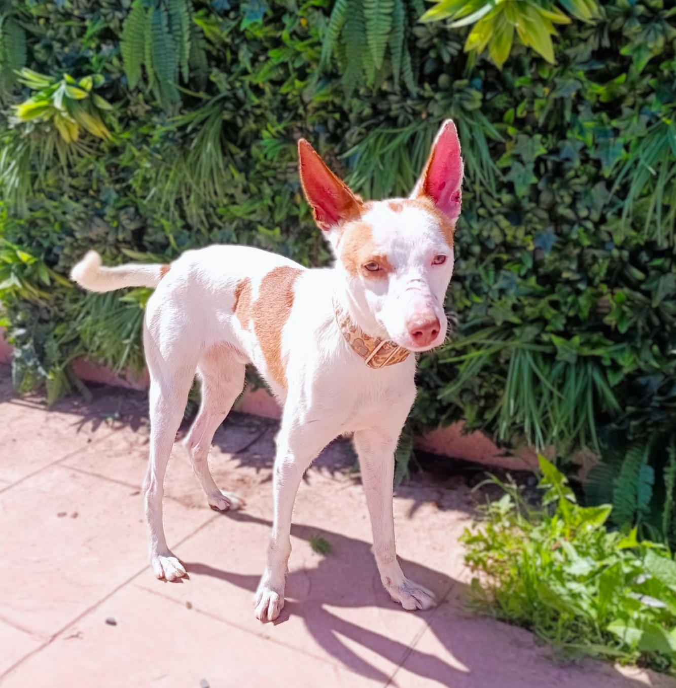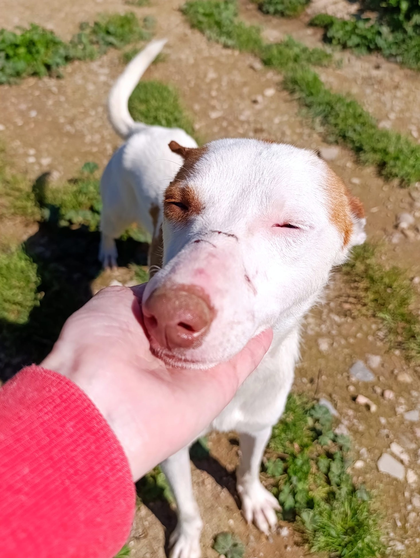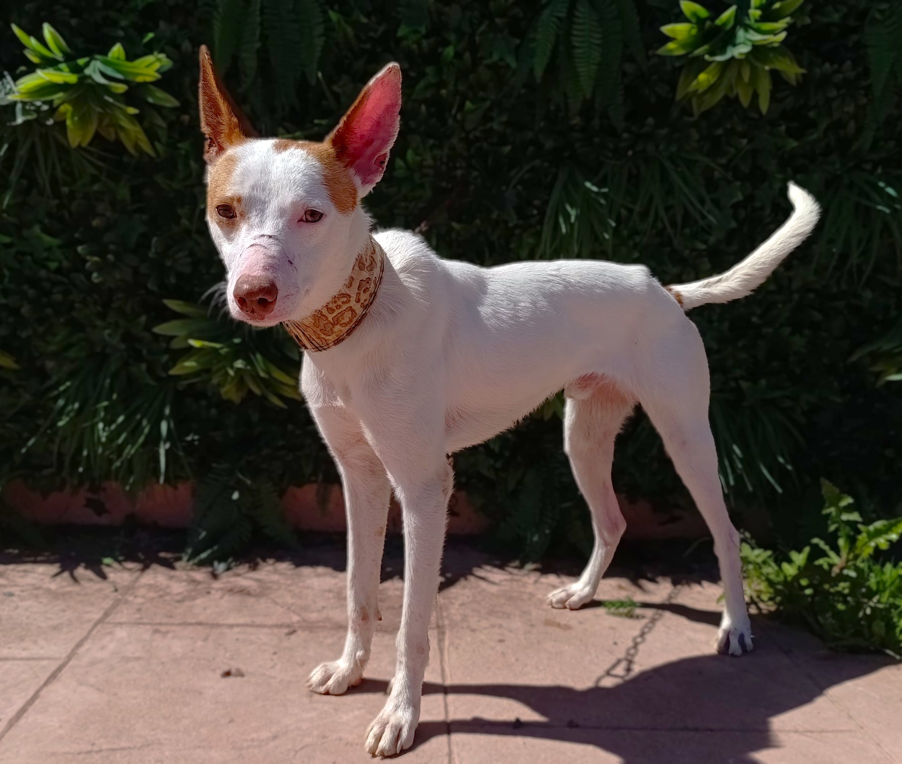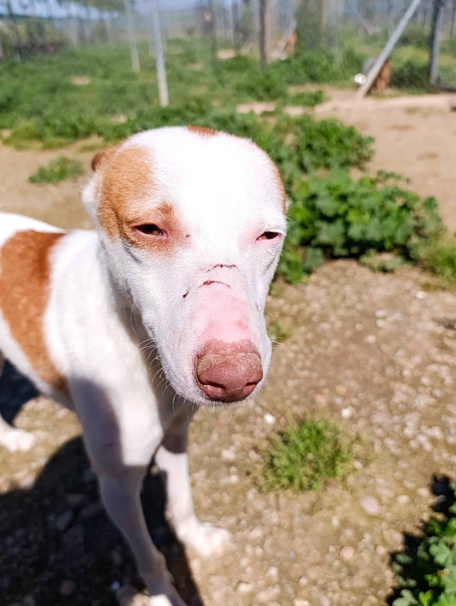 Hij is een heel sympathiek, vrolijk en aanhankelijk hondje. Hij is actief en speels, is altijd blij en geniet van zijn nieuwe leven in het opvangcentrum, op zoek naar knuffels van iedereen die in de buurt komt. En hoewel hij speels is, als de andere honden niet met hem willen spelen, stoort hij zich er niet aan en blijft rustig wandelen of gewoon liggen in de zon, hoewel we weten dat als hij met een actievere hond in een huis zou zijn, hij veel meer zouden spelen. Als hij zich verveelt, begint hij door het hele park te snuffelen op zoek naar kleine insecten alsof hij aan het jagen is, hij heeft nog steeds een sterk jachtinstinct. Het is een zeer grappige en bovendien heel mooie hond, hij heeft een vrij gemakkelijk karakter, zelfs geschikt voor beginners. Omdat hij speels is, raden we aan dat hij beter bij gezinnen past die al een andere hond thuis hebben en die niet te rustig zijn, aangezien hij erg zal genieten van het gezelschap van andere honden en zelfs kinderen.