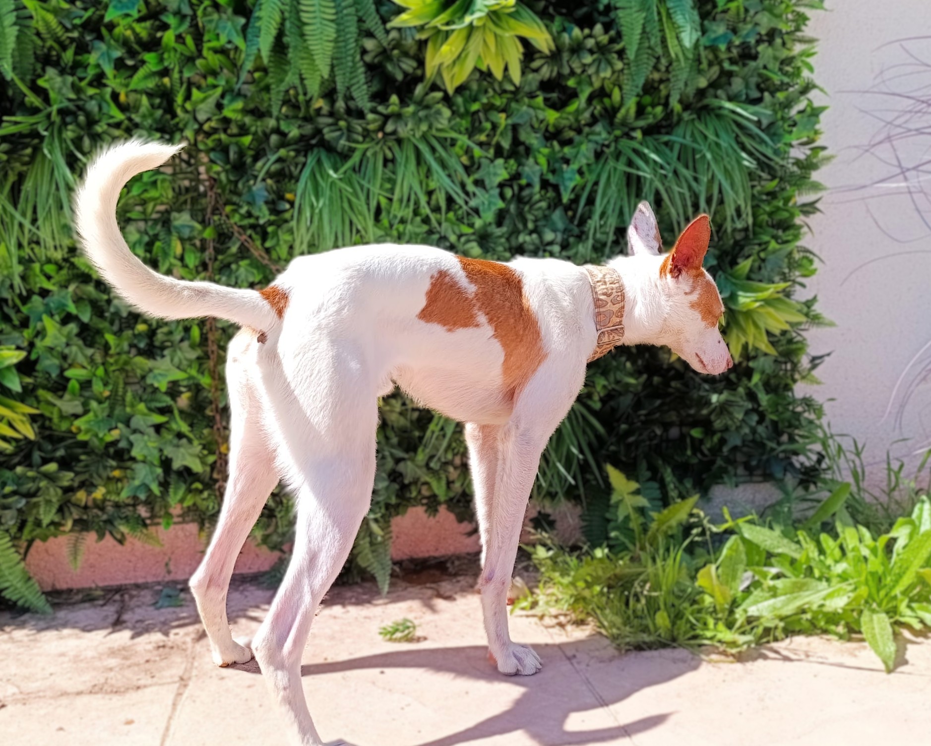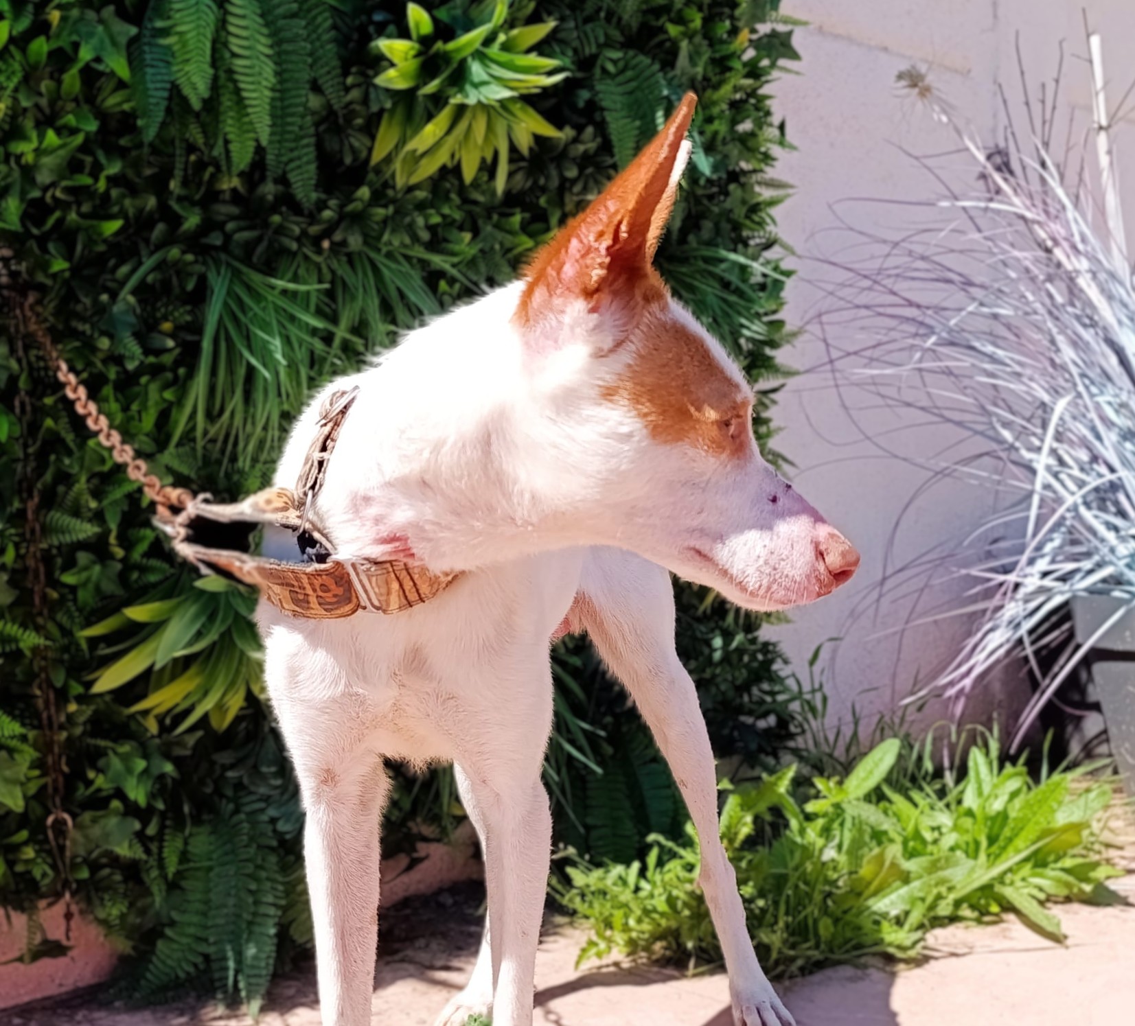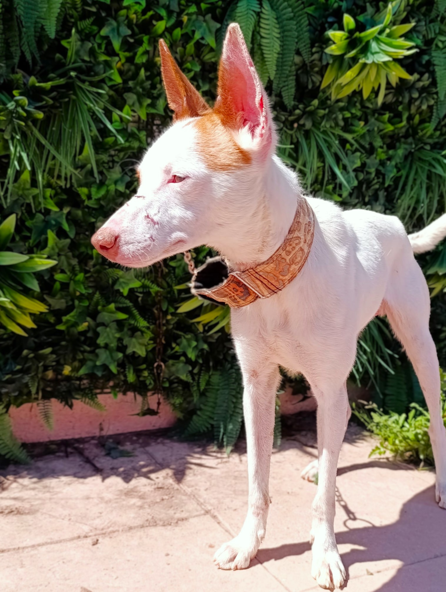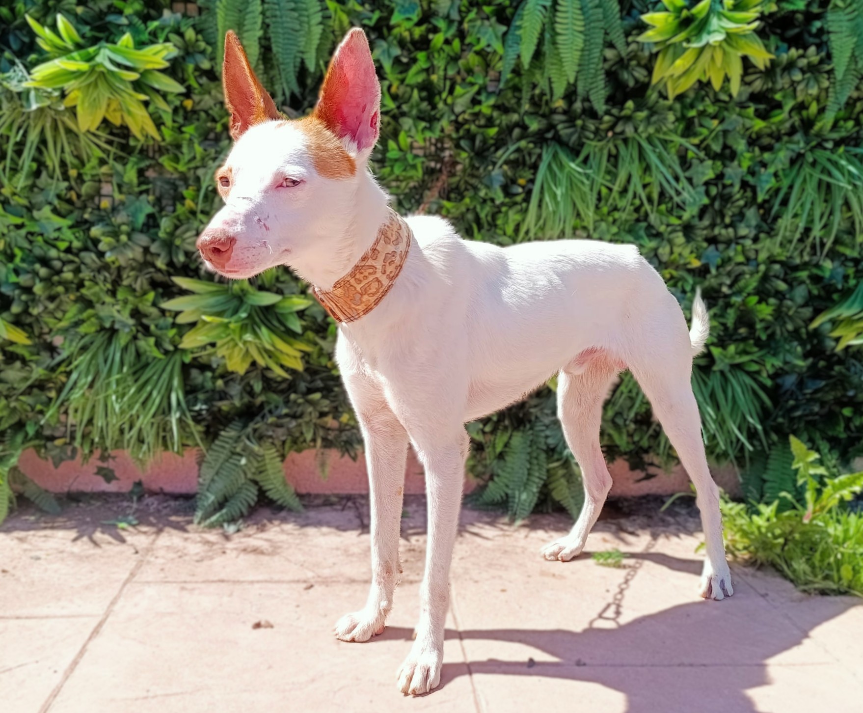 Hij is een heel sympathiek, vrolijk en aanhankelijk hondje. Hij is actief en speels, is altijd blij en geniet van zijn nieuwe leven in het opvangcentrum, op zoek naar knuffels van iedereen die in de buurt komt. En hoewel hij speels is, als de andere honden niet met hem willen spelen, stoort hij zich er niet aan en blijft rustig wandelen of gewoon liggen in de zon, hoewel we weten dat als hij met een actievere hond in een huis zou zijn, hij veel meer zouden spelen. Als hij zich verveelt, begint hij door het hele park te snuffelen op zoek naar kleine insecten alsof hij aan het jagen is, hij heeft nog steeds een sterk jachtinstinct. Het is een zeer grappige en bovendien heel mooie hond, hij heeft een vrij gemakkelijk karakter, zelfs geschikt voor beginners. Omdat hij speels is, raden we aan dat hij beter bij gezinnen past die al een andere hond thuis hebben en die niet te rustig zijn, aangezien hij erg zal genieten van het gezelschap van andere honden en zelfs kinderen.