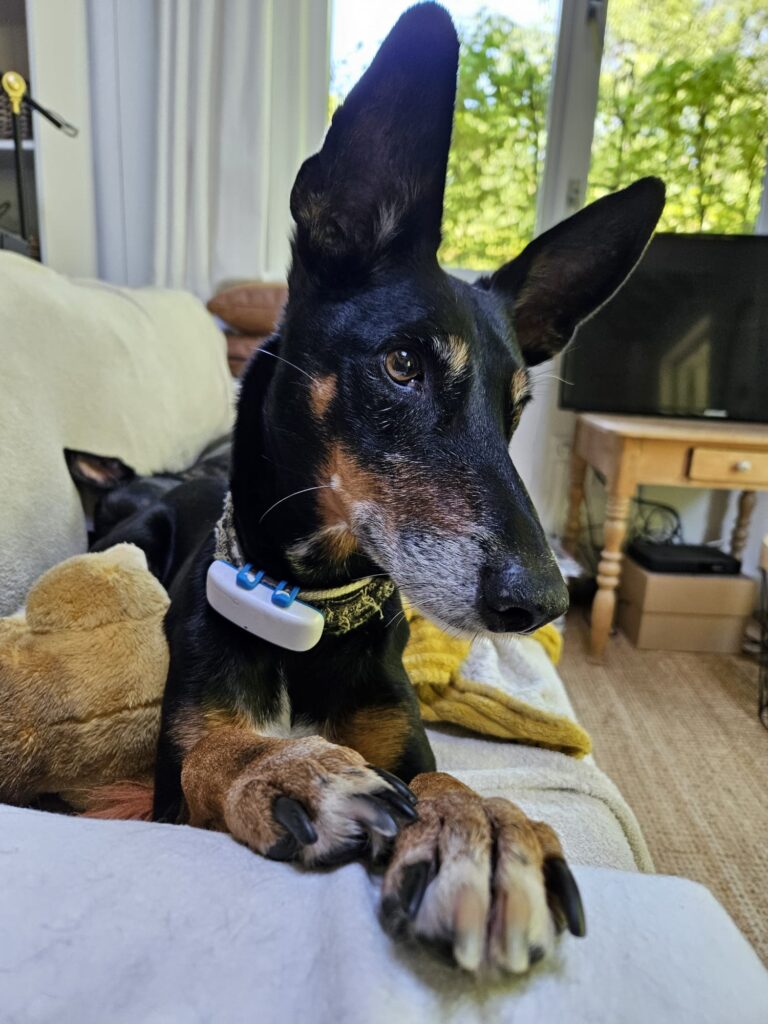 Boeddha kan niet makkelijk los. We doen het zo nu en dan wel maar meneer gaat direct op pad om te jagen. Hij blijft wel redelijk in de buurt en komt uiteindelijk wel maar wel op zijn eigen tijd. Hij laat zich dan ook prima pakken. Tegen andere honden is Boeddha heel erg leuk.